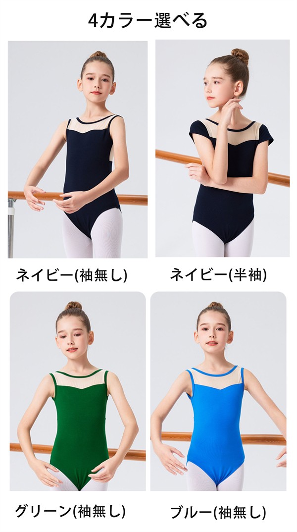 バレエ レオタード 子供 女の子 キッ 体操 ダンス バレエ レオタード 豊富 ネイビー(半袖) ネイビー(袖無し) ブルー(袖無し) グリーン(袖無し) 110cm 120cm 130cm 140cm 150cm 160cm
