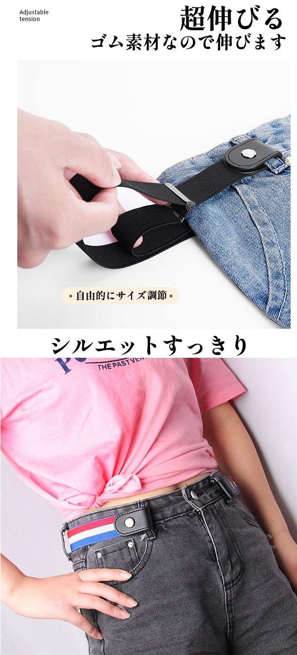3cm幅楽々 ゴムベルト レディース サイズ調節可能 バックル無し 楽々ゴムベルト 無段階 楽ちんゴムベルト 楽ちん ベルト ゴム 女性 メンズ キッズ 脚長効果 男女兼用