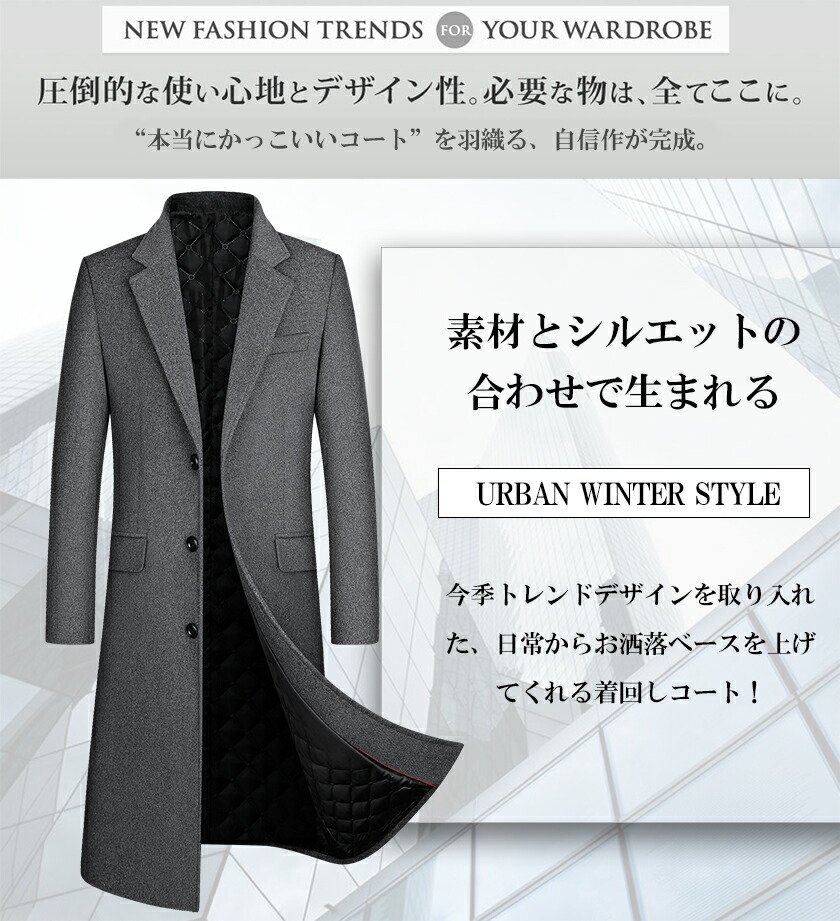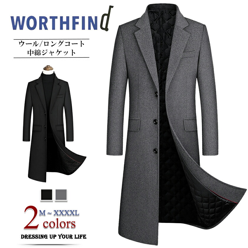 チェスターコート ロングコート 中綿コート 中綿ジャケット ウールコート スタンドカラー 膝丈 コート ジャケット テーラードジャケット ロング ウール アウター ビジネス カジュ メンズ
