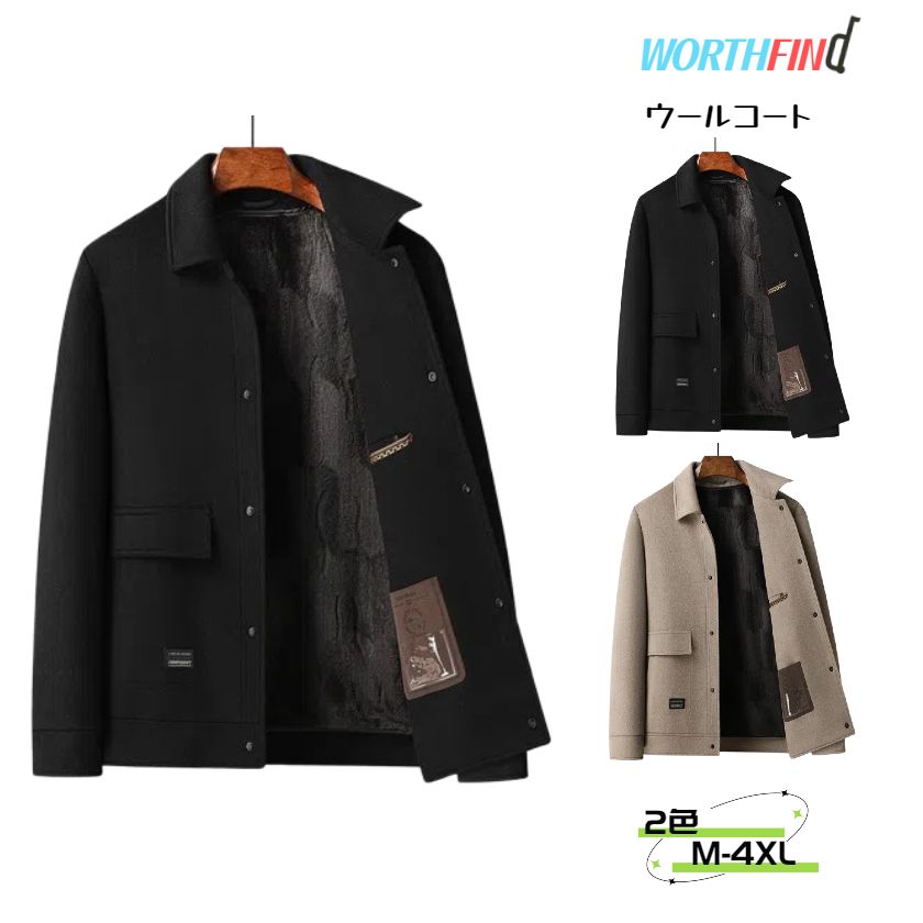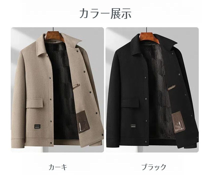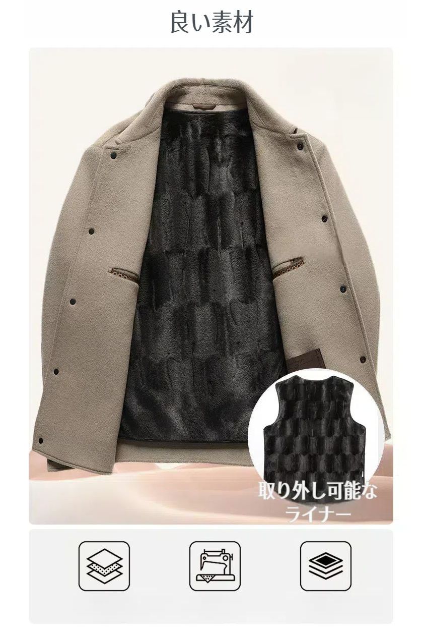 100%ウールコート チェスターコート コート ショートジャケット ファーライナー 裏起毛 トレンチコート ジャケット ショート メンズ アウター ビジネス 長袖 暖か アメカジ カジュアル