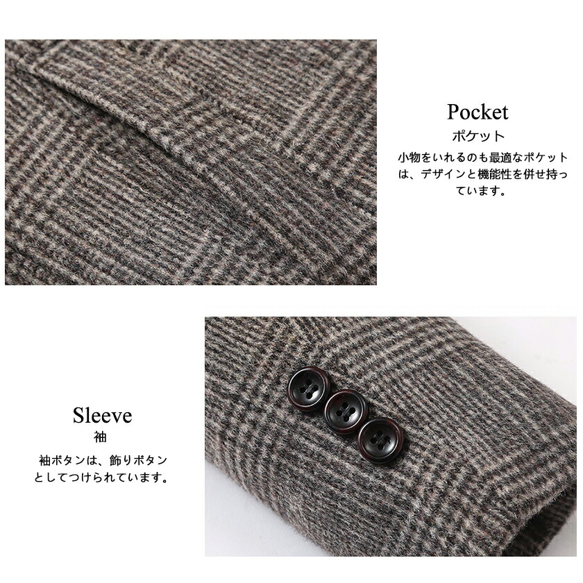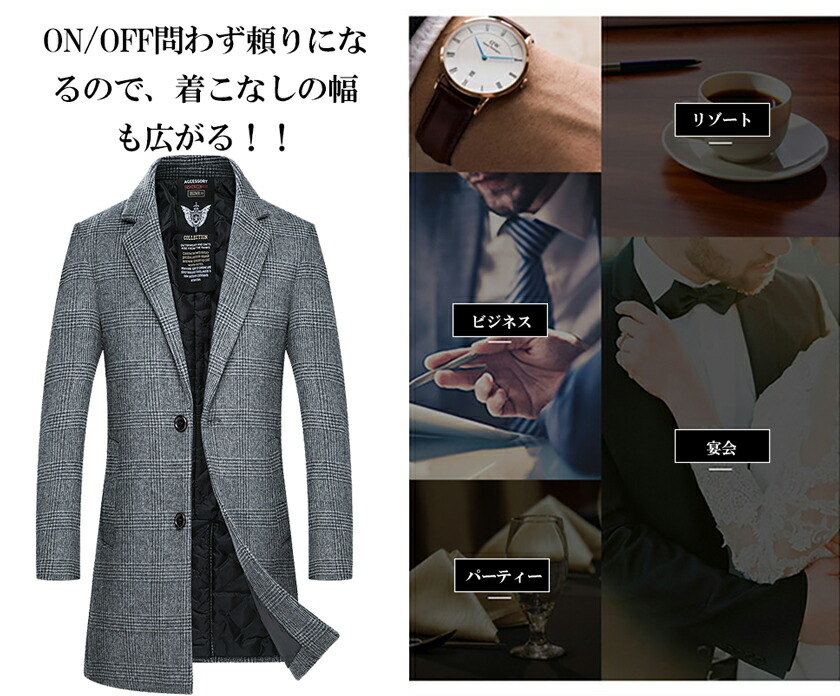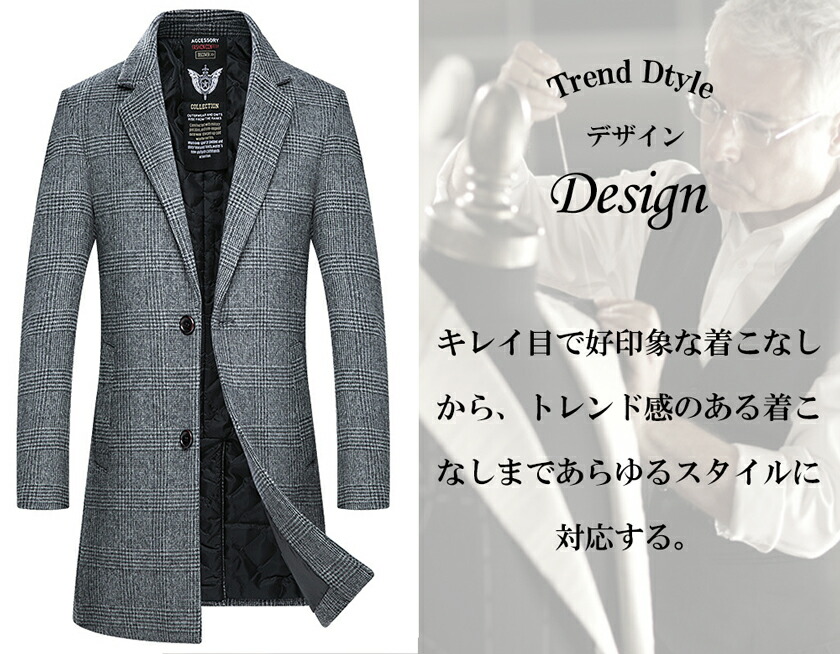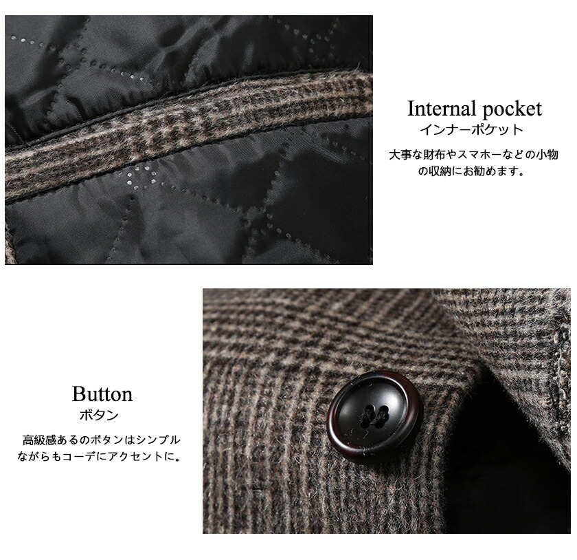 チェスターコート ウールコート ロングコート 中綿 テーラードジャケット ロング ジャケット コート メンズ アウター ビジネス カジュアル スリム 暖か 冬服 チェック