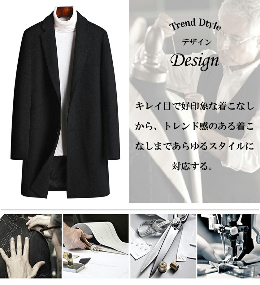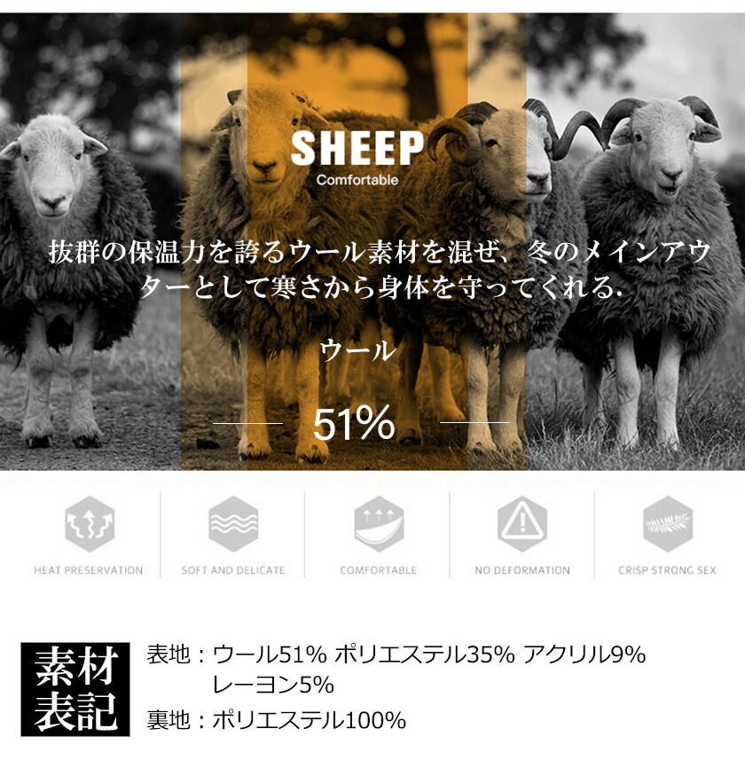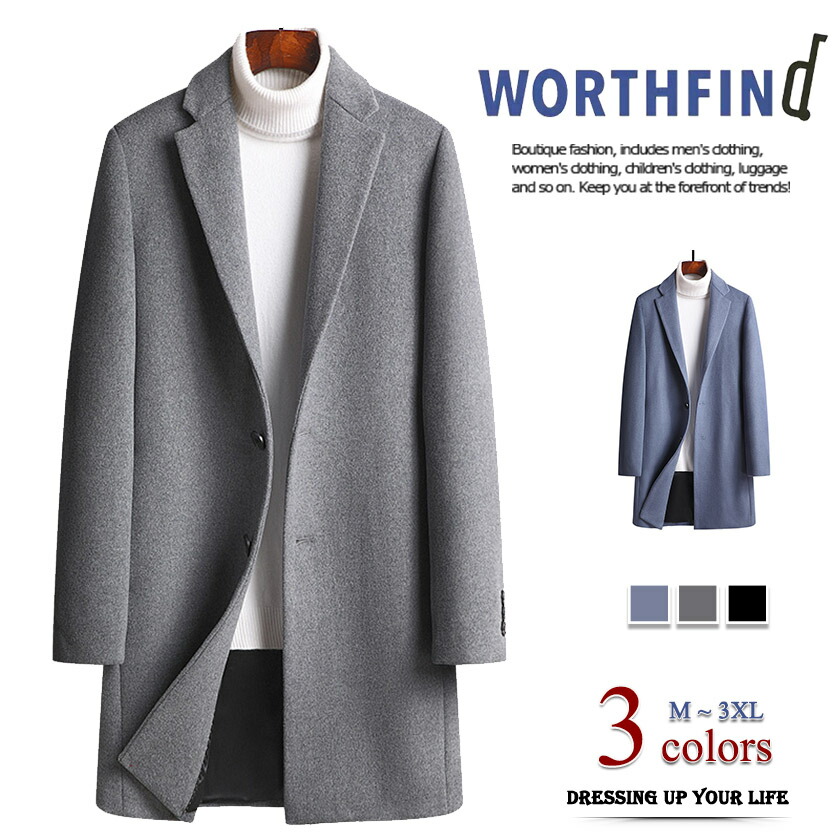 ウールコート チェスターコート ジャケット ウール コート メンズ アウター 紳士 ビジネス カジュアル ロング 通勤 通学 保温 暖か ポケット付き ボタン付き オシャレ 無地 秋服 秋 シンプル