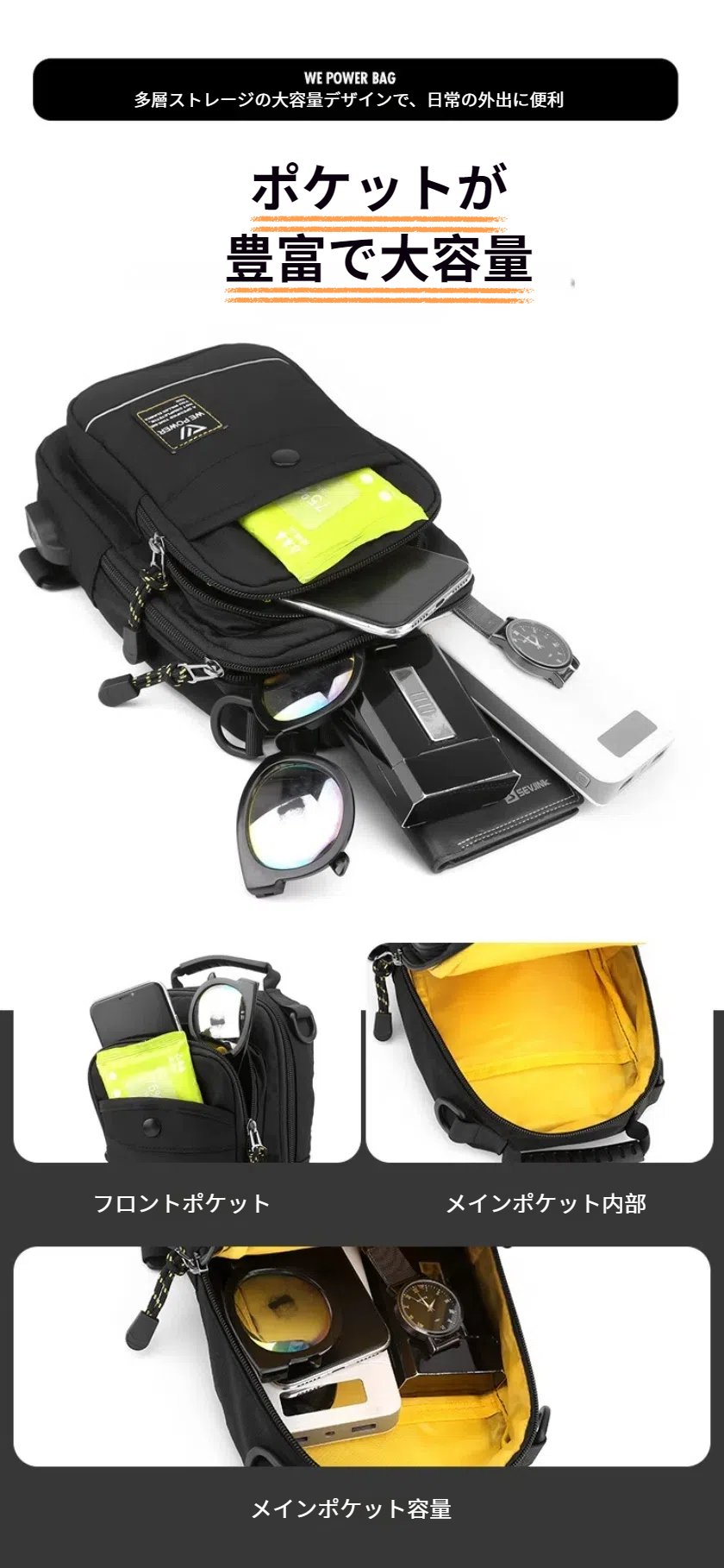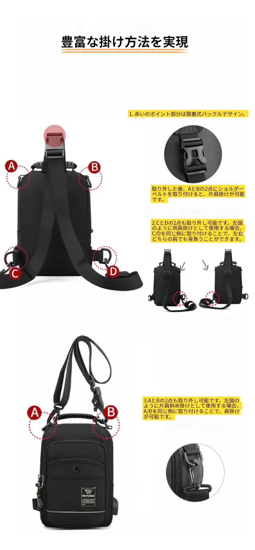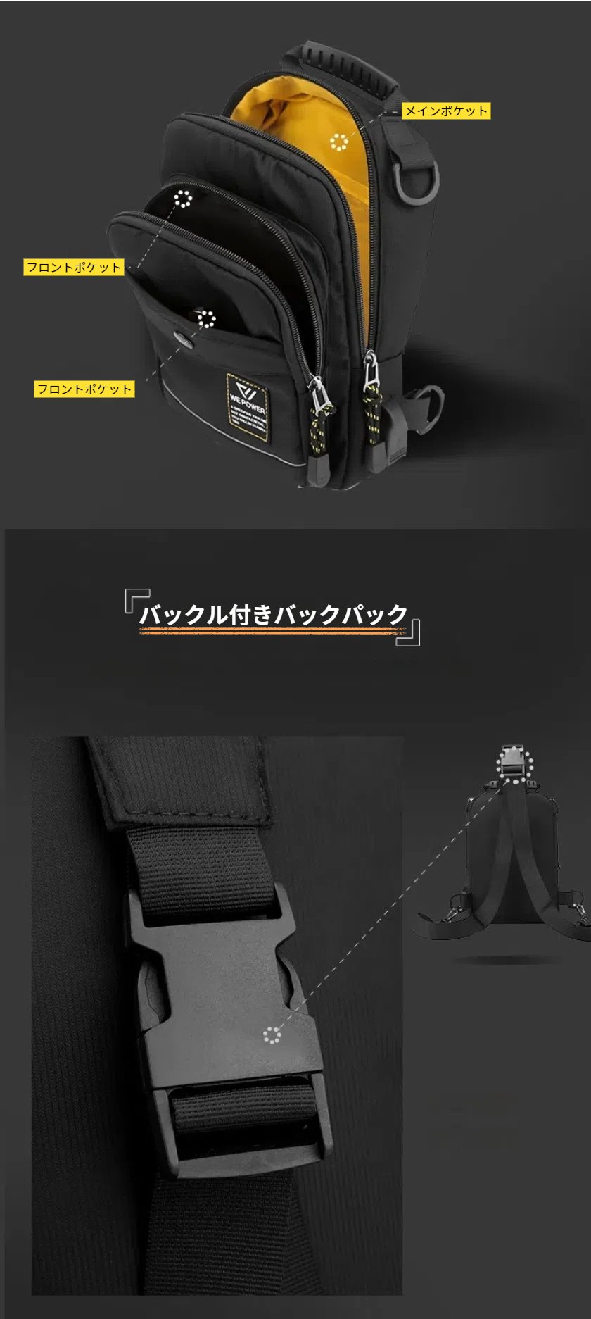 WE POWER ボディバッグ メンズ ショルダーバッグ カッコイイ リュックサック 4way 斜めがけ 肩掛け 超軽量 大容量 多機能 撥水加工 おしゃれ コンパクト 丈夫 耐久性 軽い カバ 頑丈