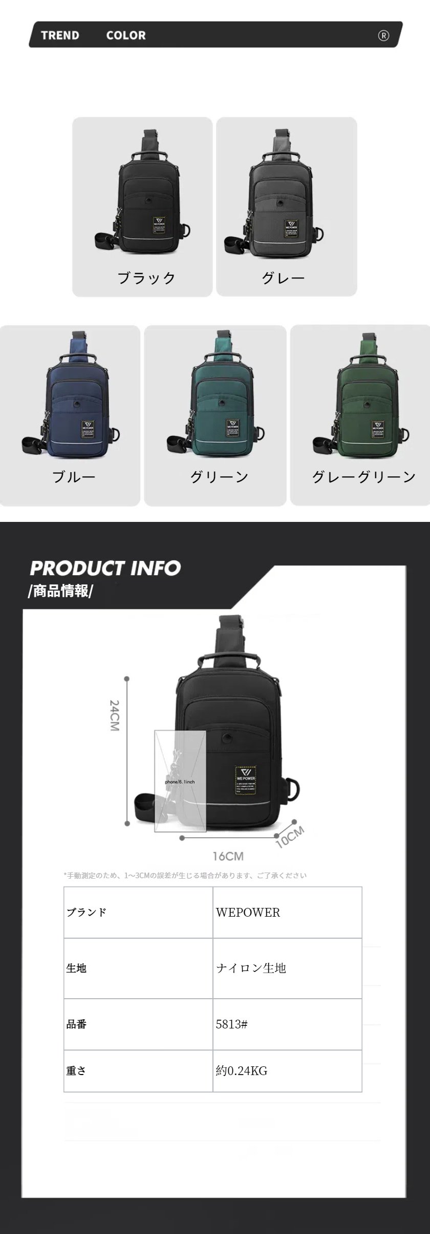 WE POWER ボディバッグ メンズ バッグ メンズバッグ ショルダーバッグ メッセンジャーバッグ 早い者勝ち ブラック グレー ブルー グリーン グレーグリーン