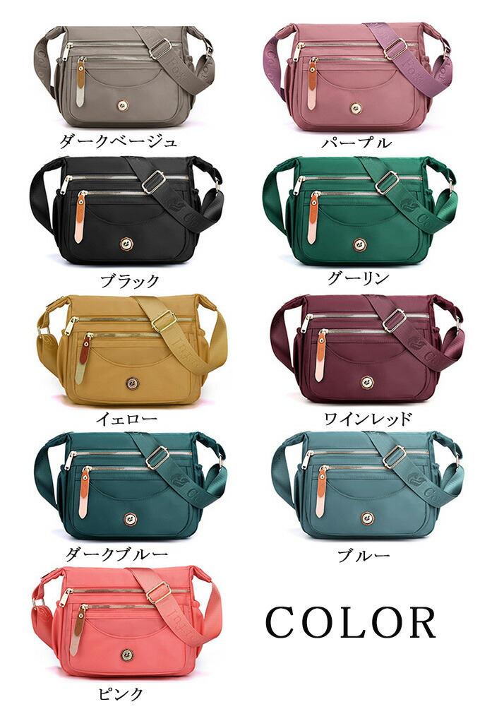 ショルダーバッグ レディース ナイロン バッグ 小物 ブランド雑貨 新作 ブラック イェロー パープル ダークベージュ ブルー グーリン ピンク ワインレッド ダークブルー
