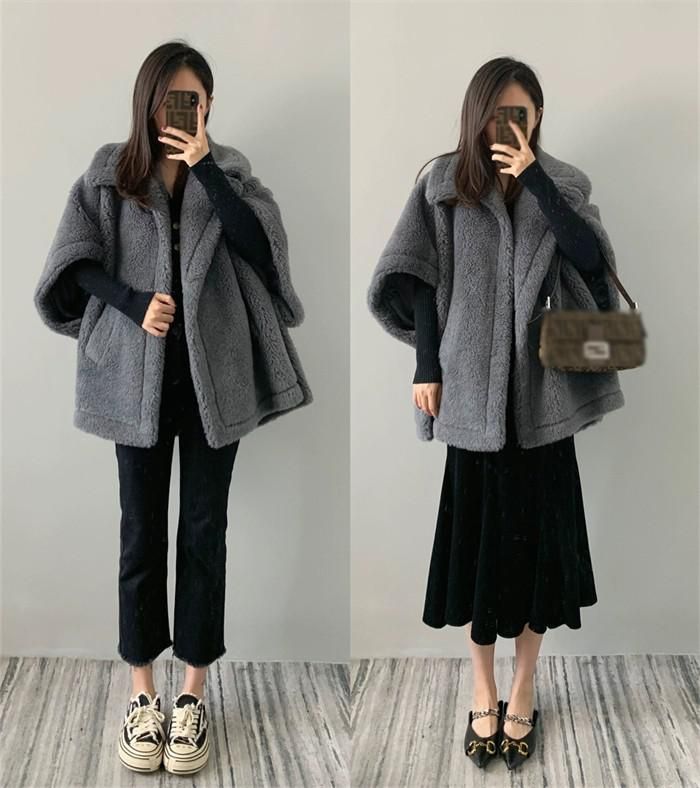 テディベアポンチョコート ポンチョ コ コート ジャケット 豊富な品揃え グレー ブラウン ベージュ ピンクA ピンクB オフホワイト S M L