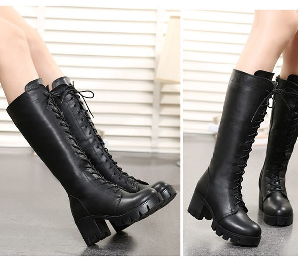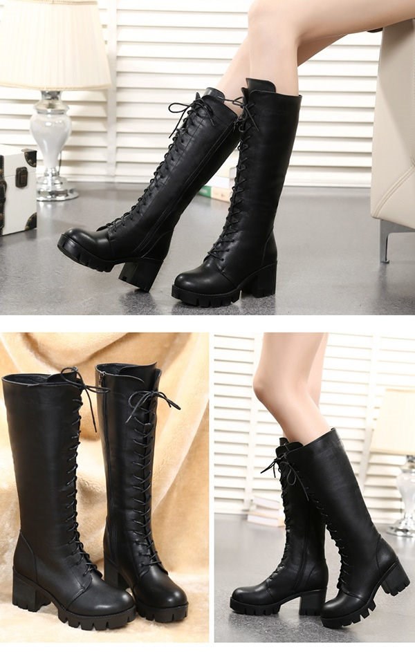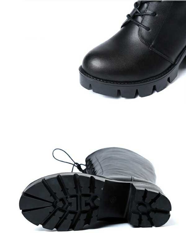ヒール7cm ミドルブーツ 編み上げ レディース靴 レインシューズ 長靴 ブーツ 通販 ブラック( コットン無) ブラック( ボア有り) 22.0 22.5 23.0 23.5 24.0 24.5
