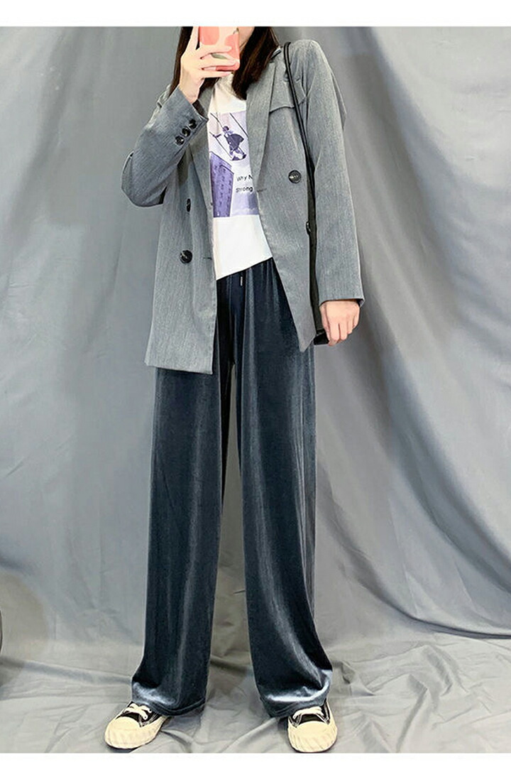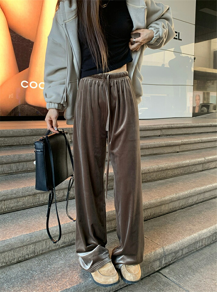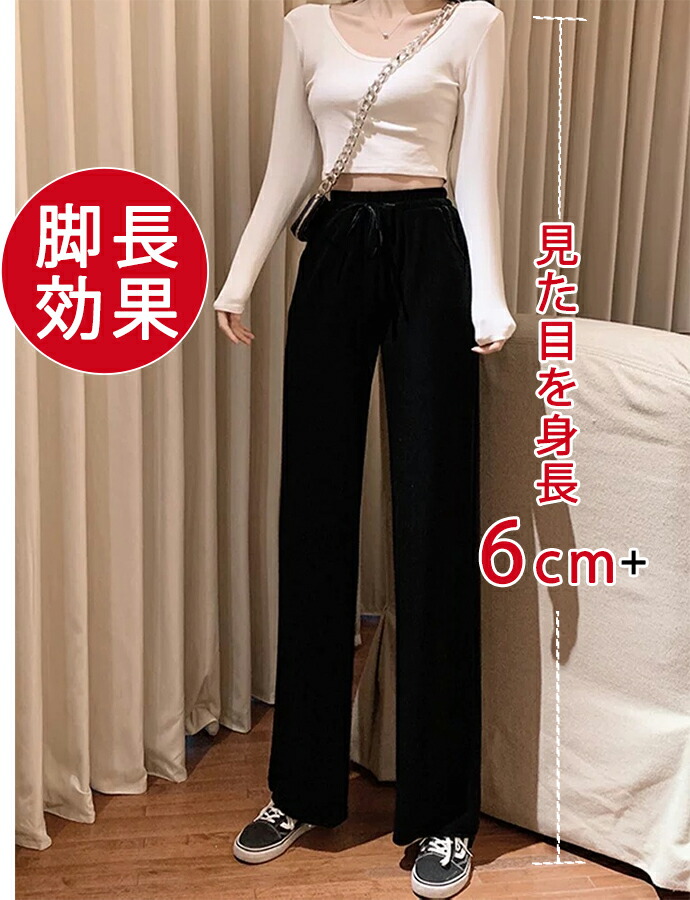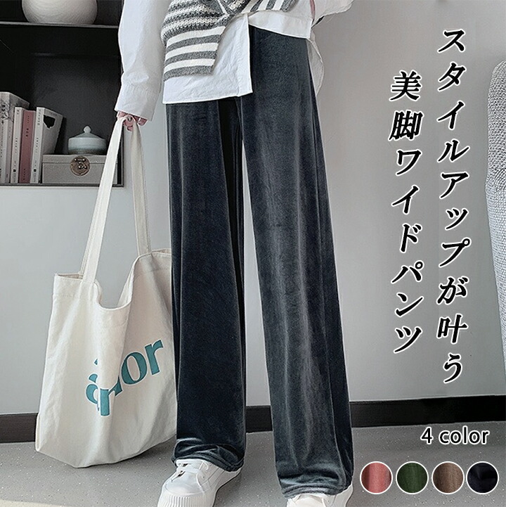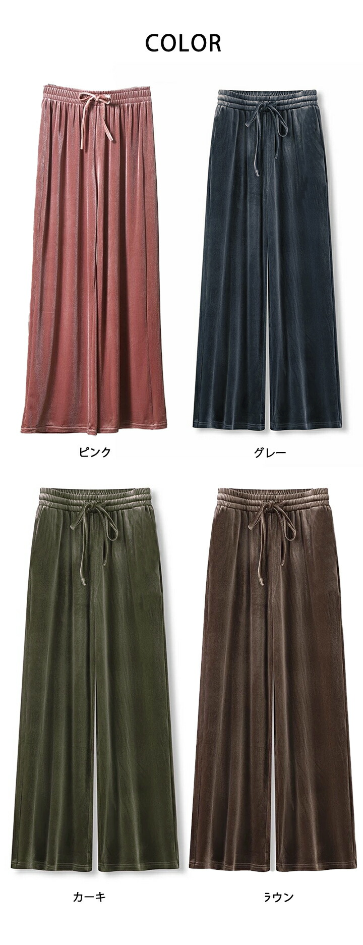 3A44 ベロアプワイドパンツ 美脚 レディースファッション 新登場! グレー ピンク カーキ