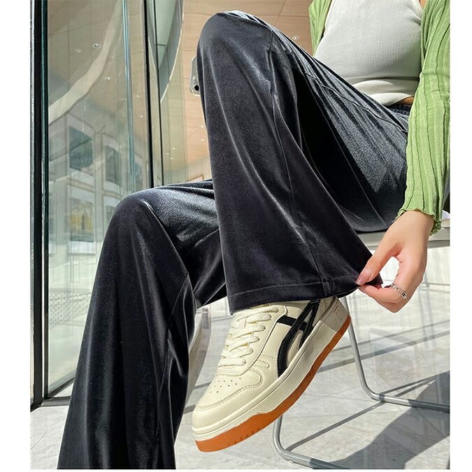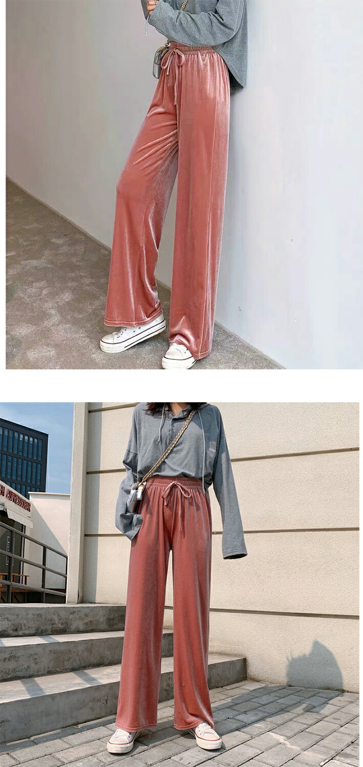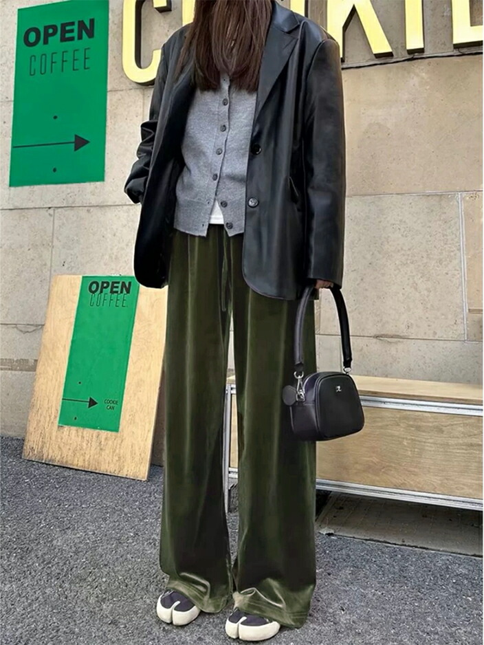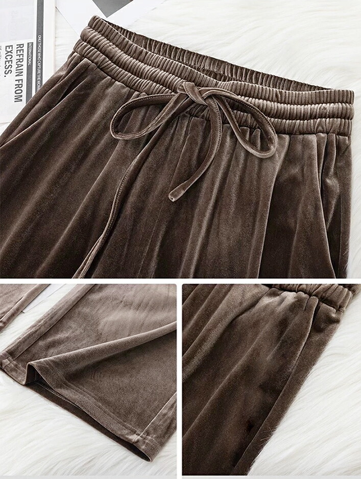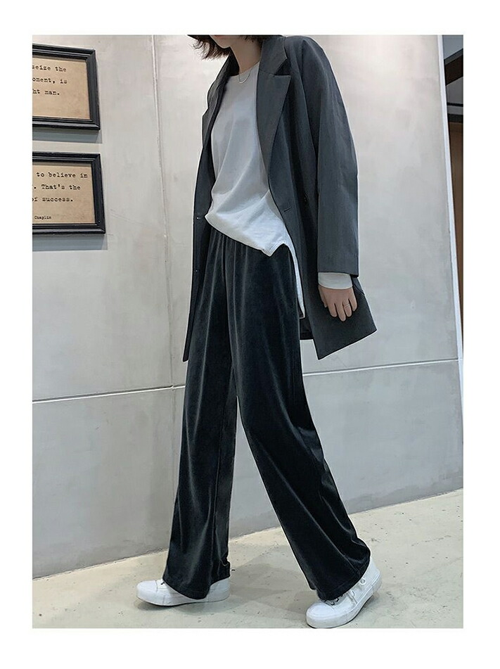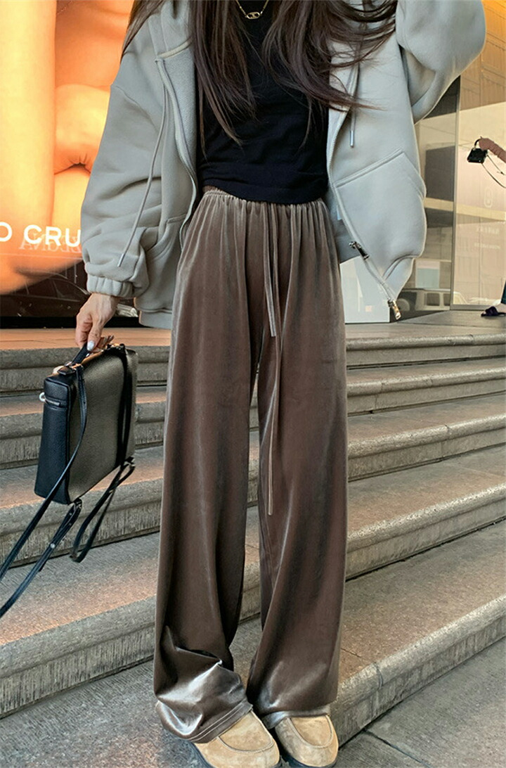 3A44 ベロアプワイドパンツ 美脚 レディースファッション 新登場! グレー ピンク カーキ