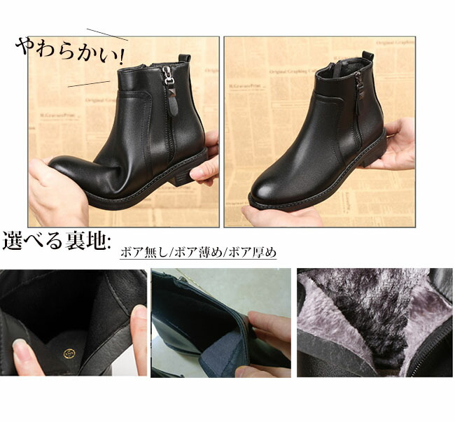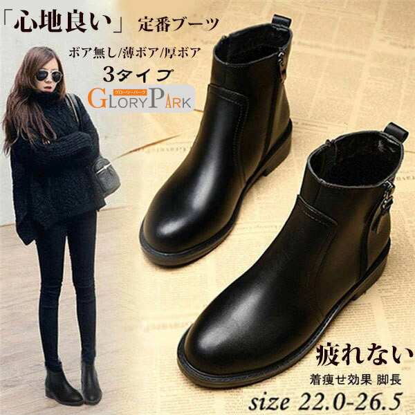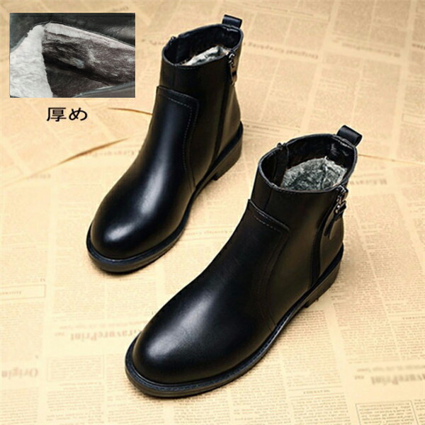 ショート ブーツ レディース ペタンコ レディース靴 ブーツ その他 通販 22.0 22.5 23.0 23.5 24.0 24.5 25.0 25.5 26.0 26.5 ブラック(ボア無し) ブラック(薄め) ブラック(厚め)