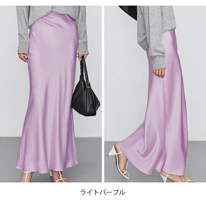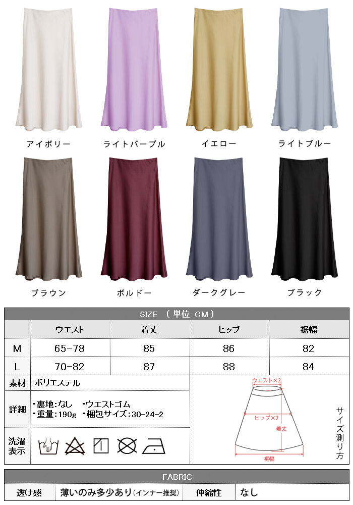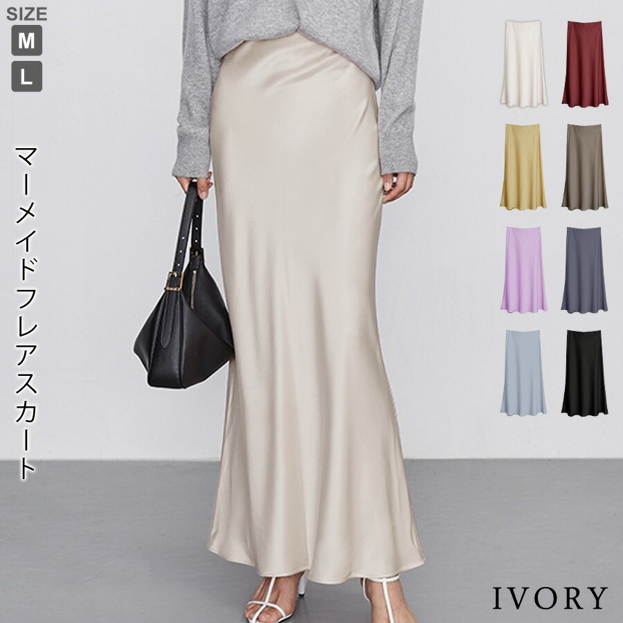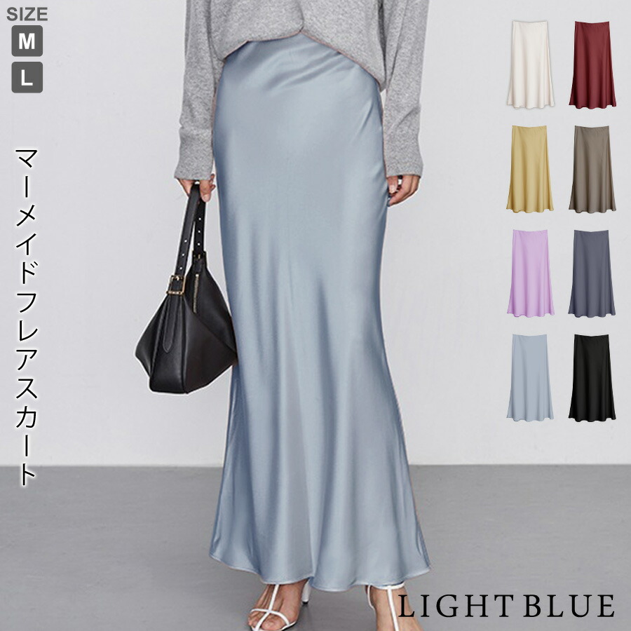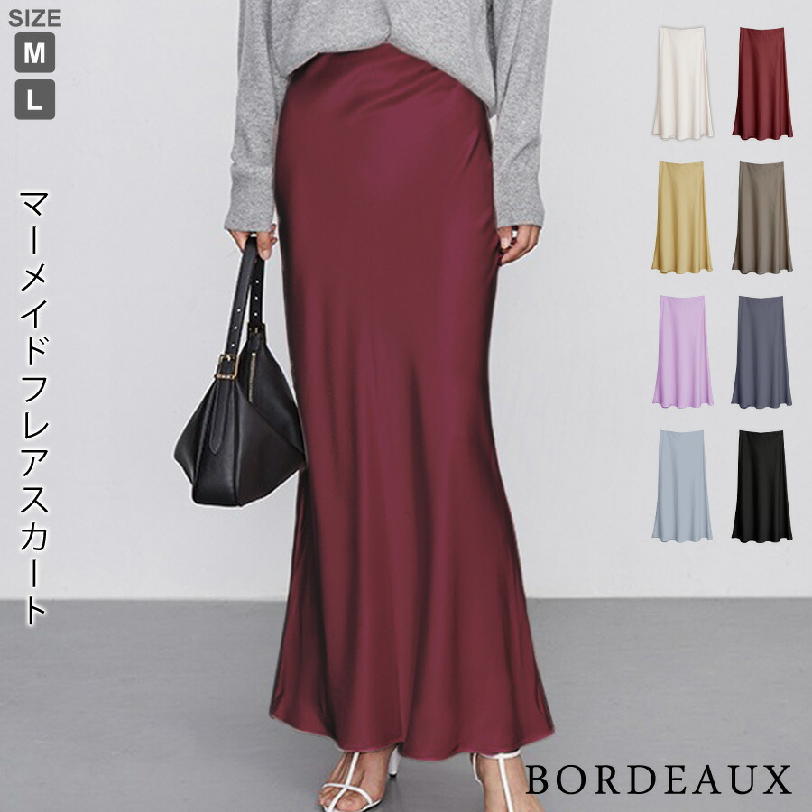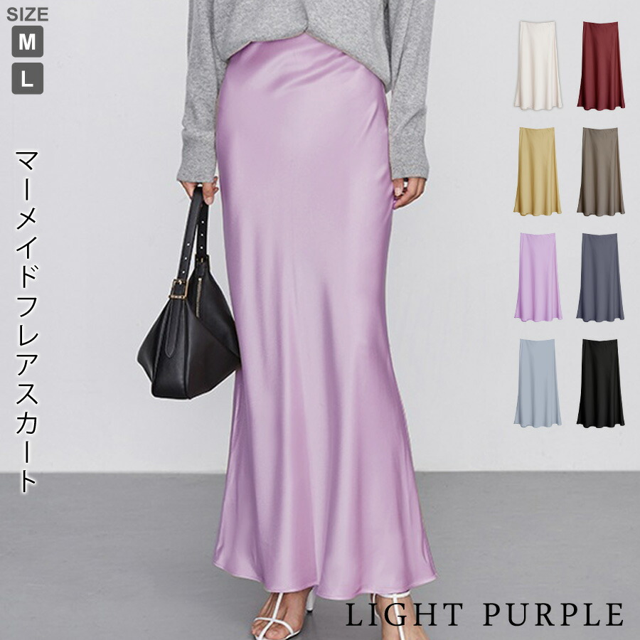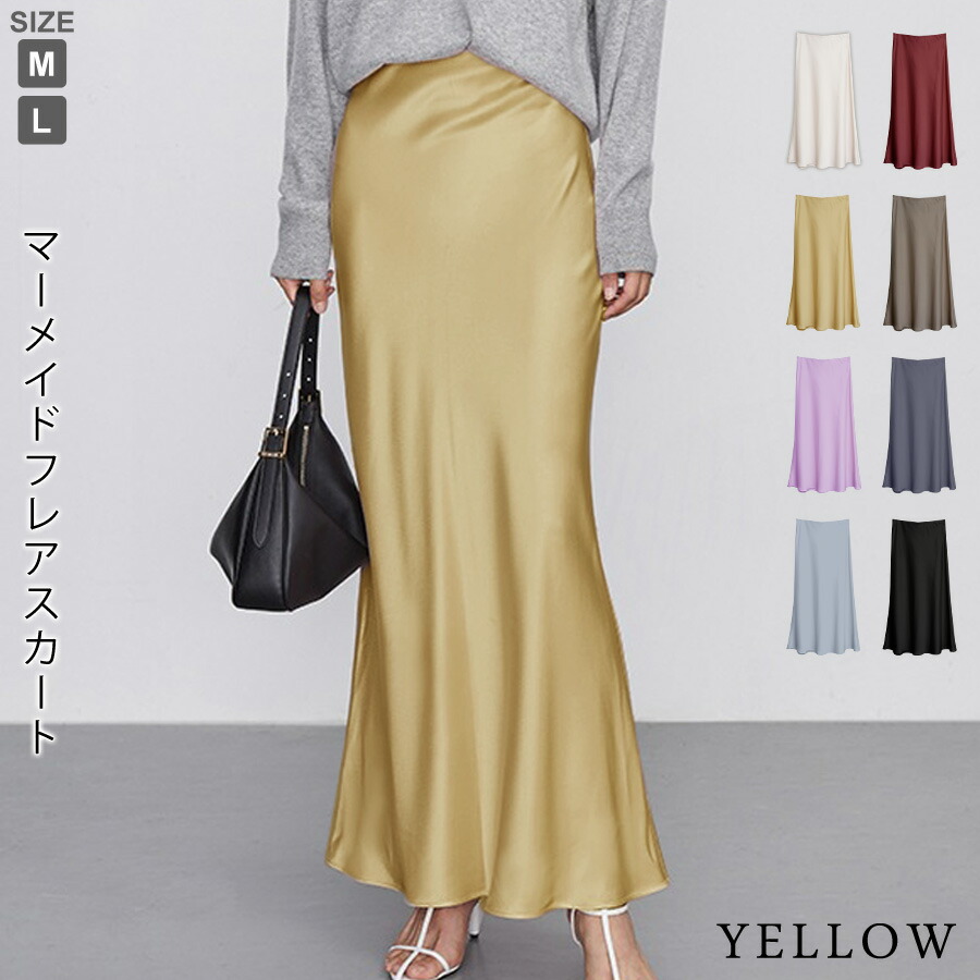 マーメイドスカート サテンスカート ロ レディースファッション 通販 アイボリー ライトパープル イエロー ライトブルー ブラウン ボルドー ダークグレー ブラック Mサイズ Lサイズ