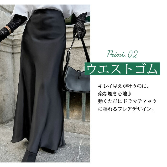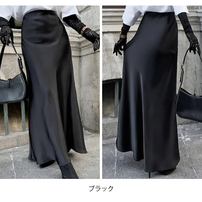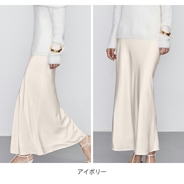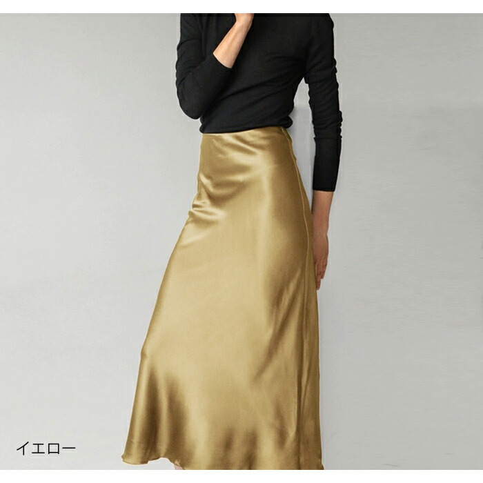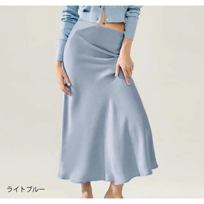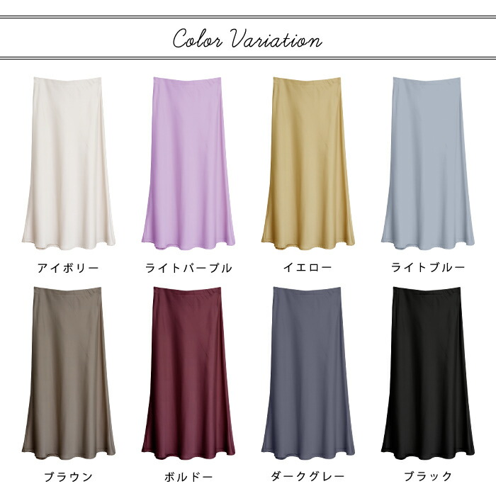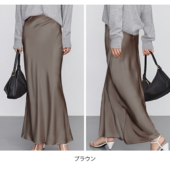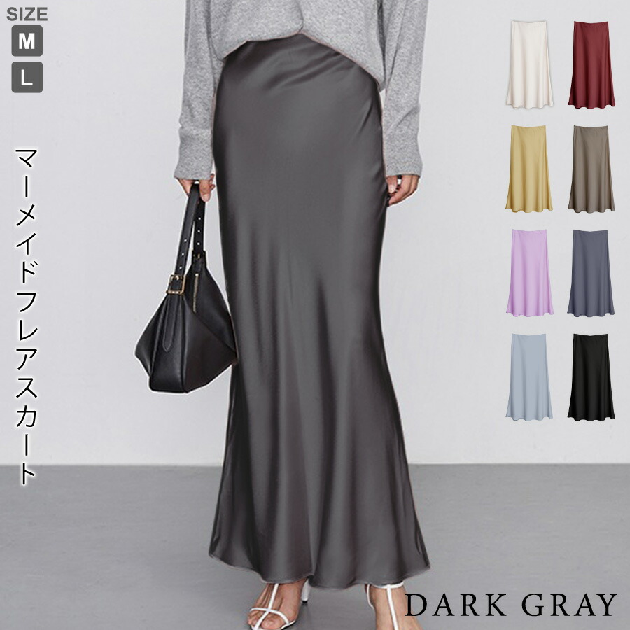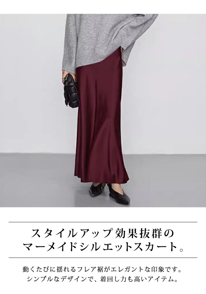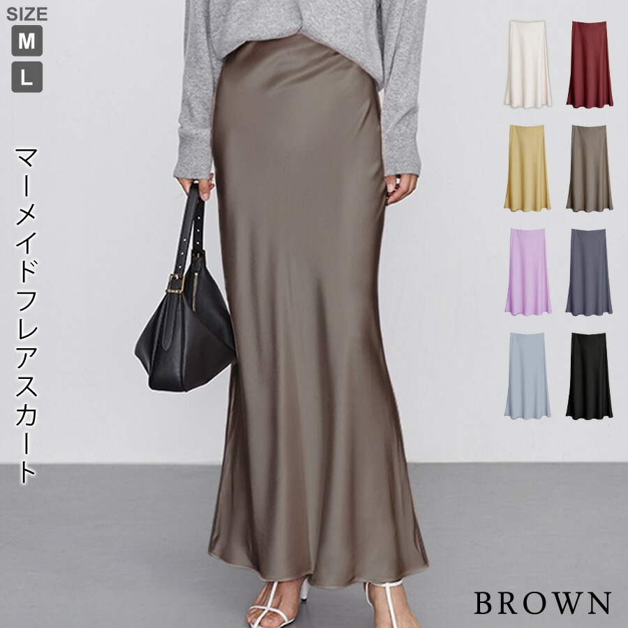 マーメイドスカート サテンスカート ロ レディースファッション 通販 アイボリー ライトパープル イエロー ライトブルー ブラウン ボルドー ダークグレー ブラック Mサイズ Lサイズ