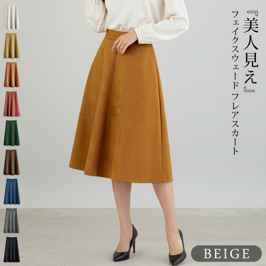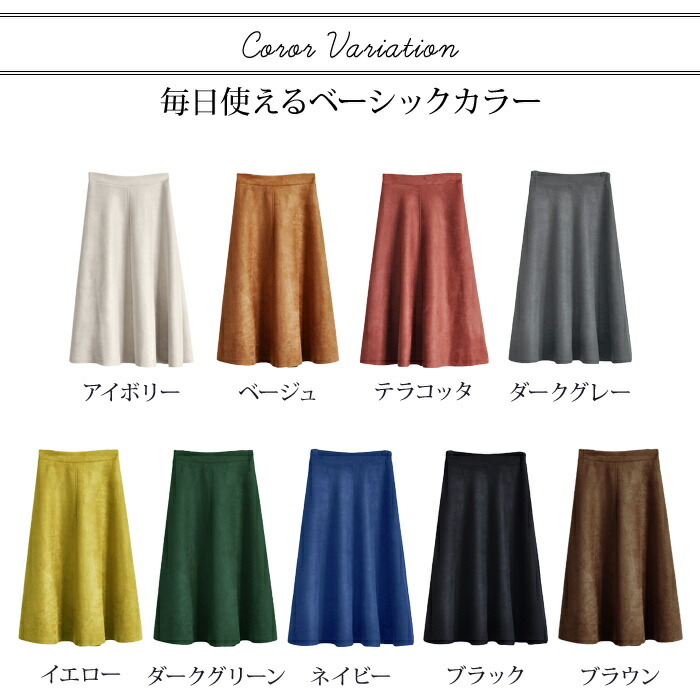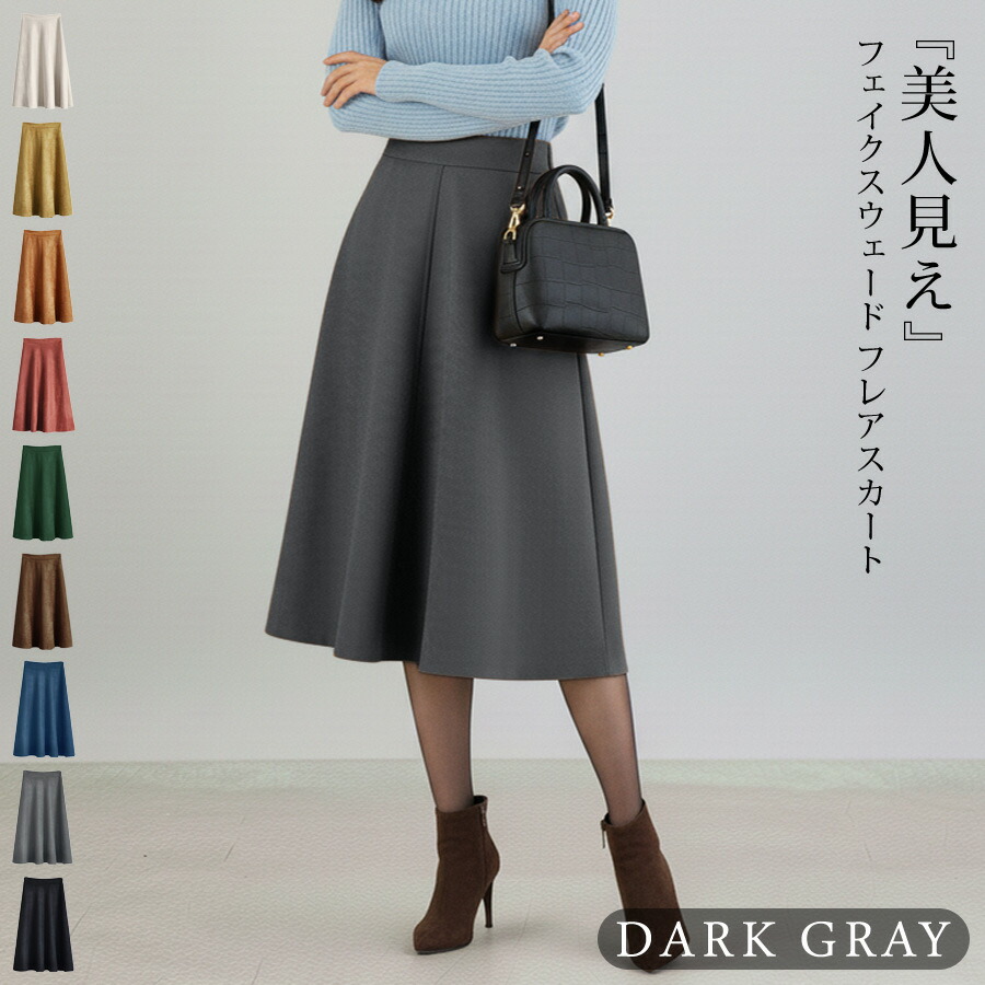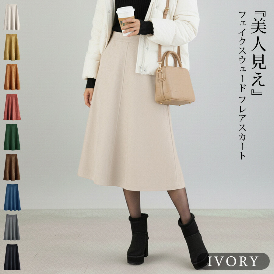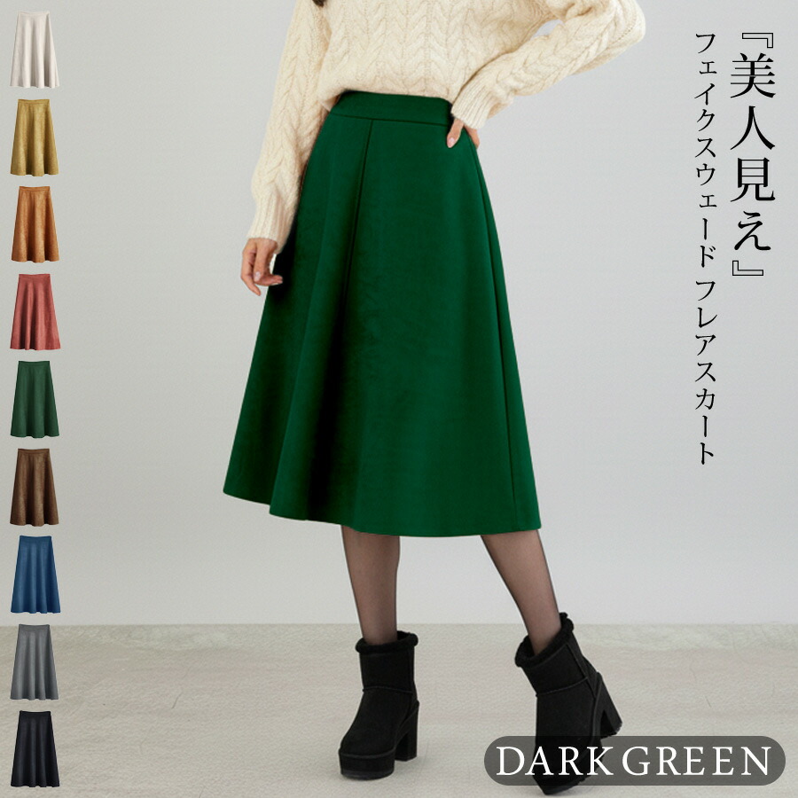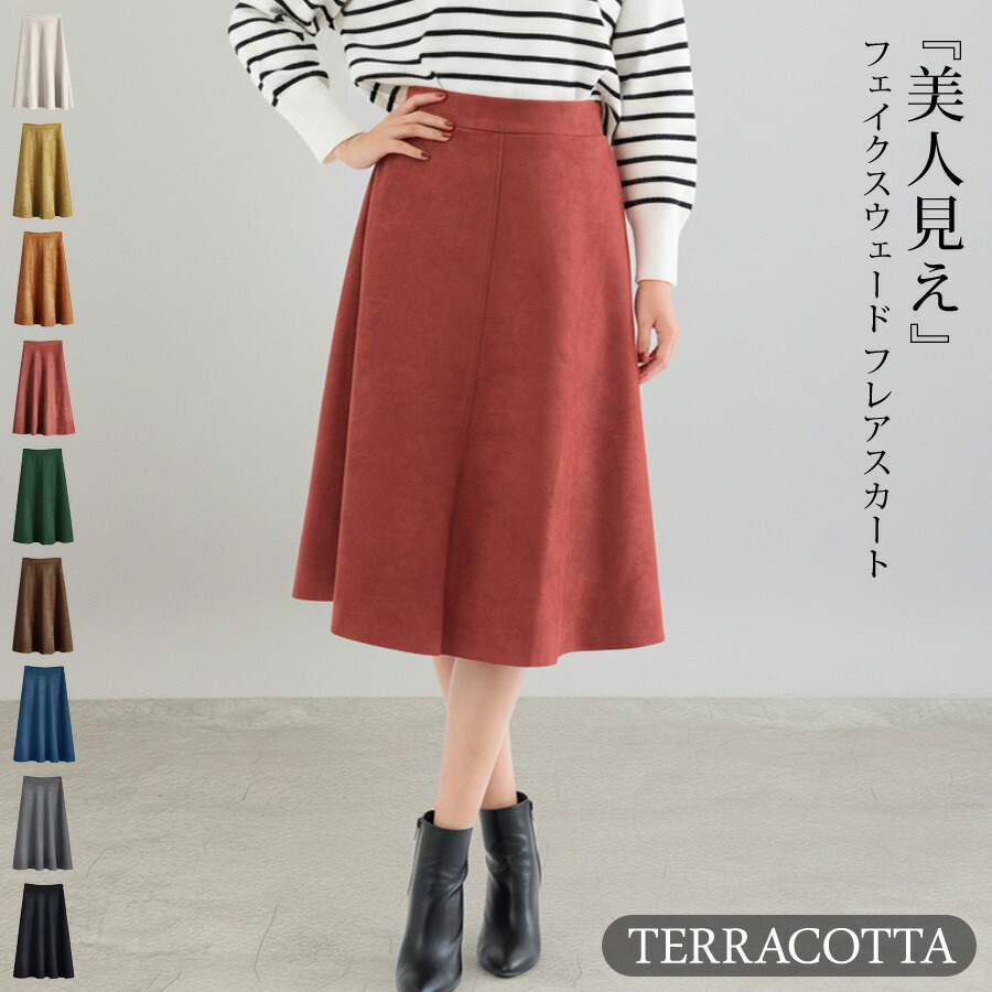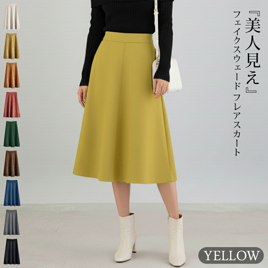 スカート ひざ丈 レディース 秋 冬 レディースファッション 人気 アイボリー ベージュ テラコッタ ダークグレー イエロー ダークグリーン ネイビー ブラウン ブラック