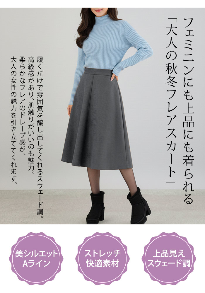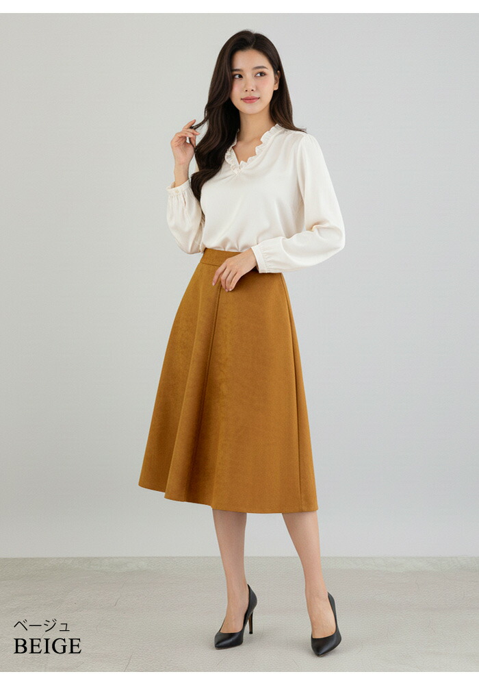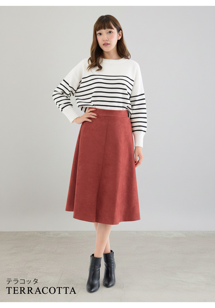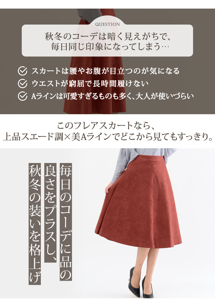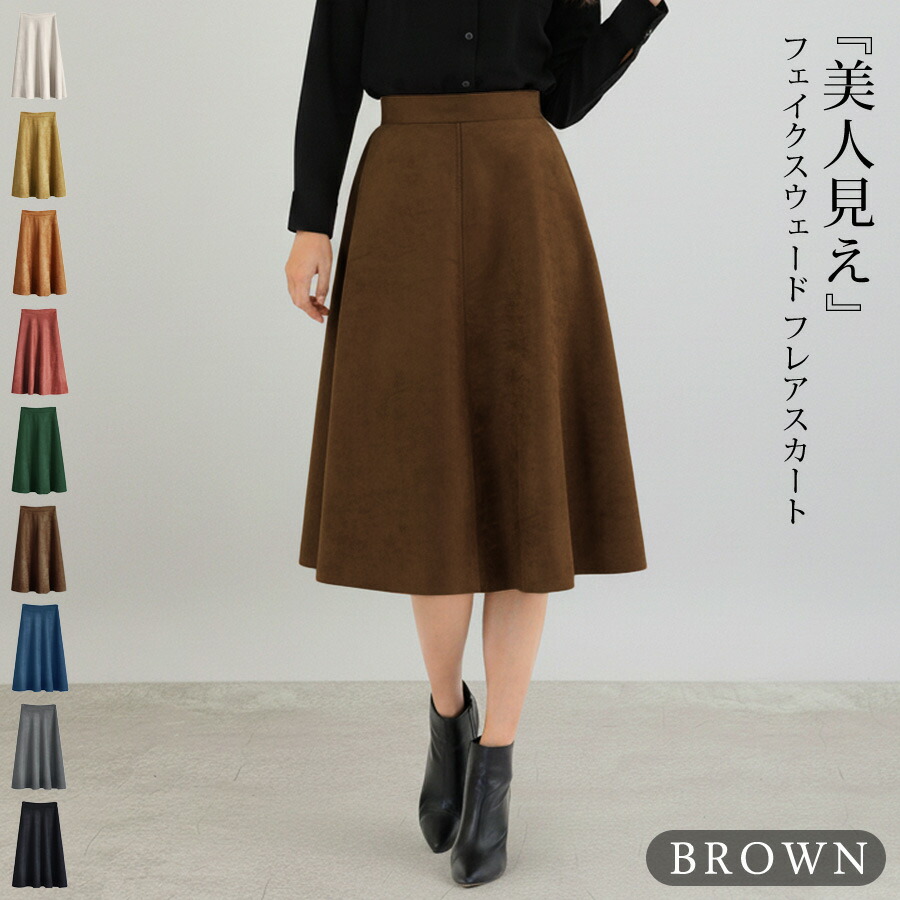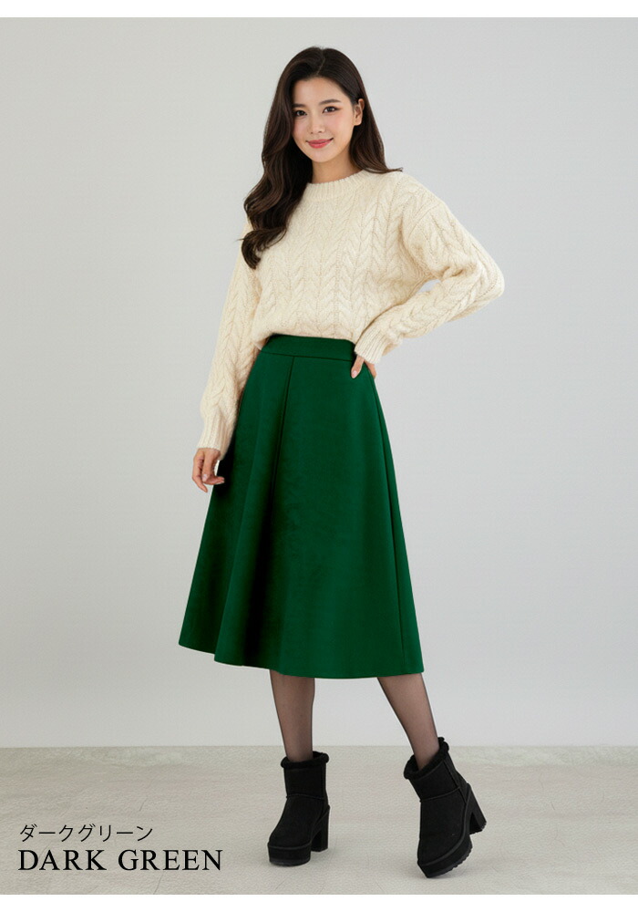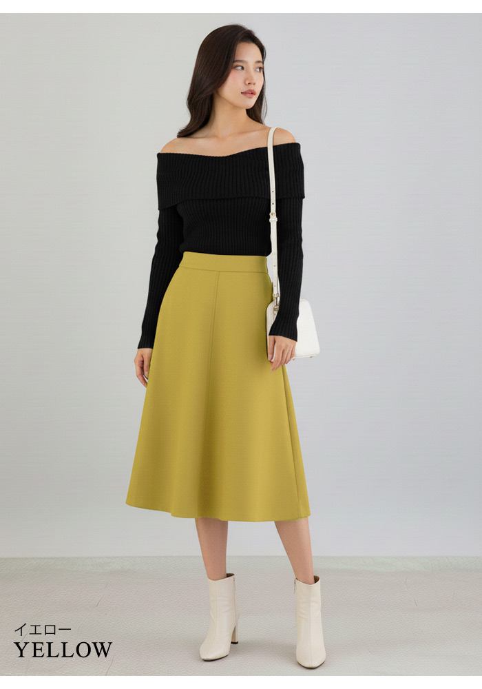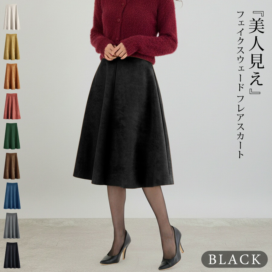 スカート ひざ丈 レディース 秋 冬 レディースファッション 人気 アイボリー ベージュ テラコッタ ダークグレー イエロー ダークグリーン ネイビー ブラウン ブラック