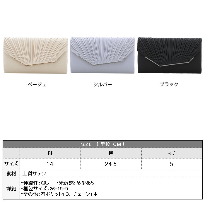パーティーバッグ レディース バッグ 大きめ クラッチバッグ プリーツ サテン パーティバッグ お呼ばれ 結婚式 卒業式 入学式 パーティー ブラック シルバー ハンドバッグ ショルダーバ ベージュ