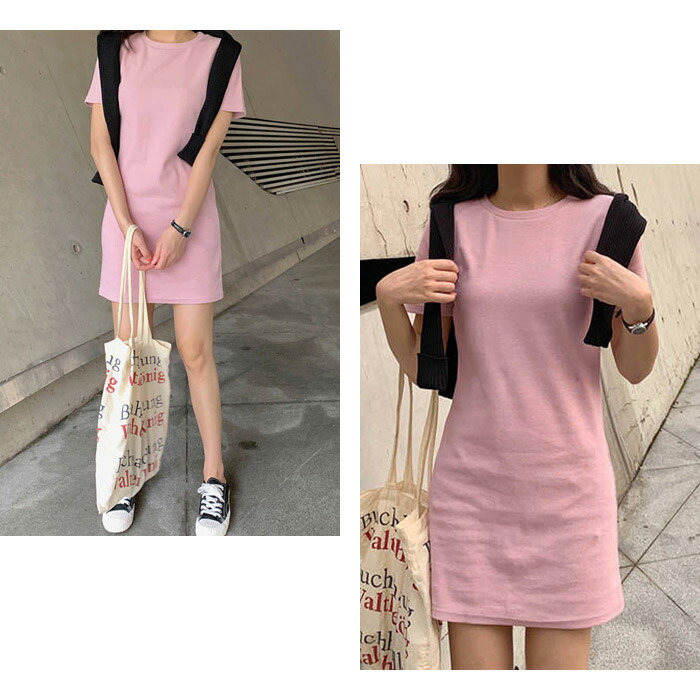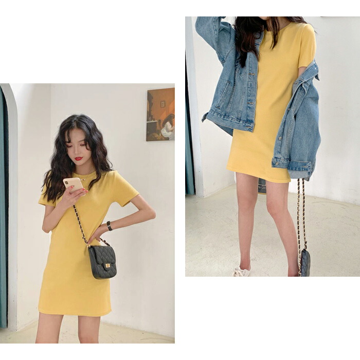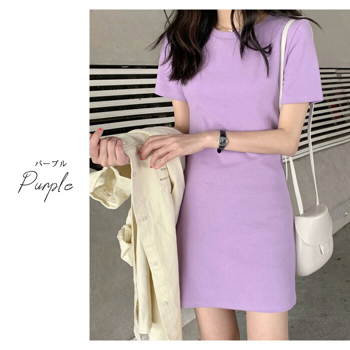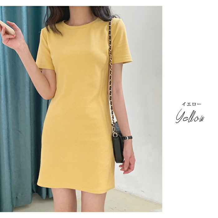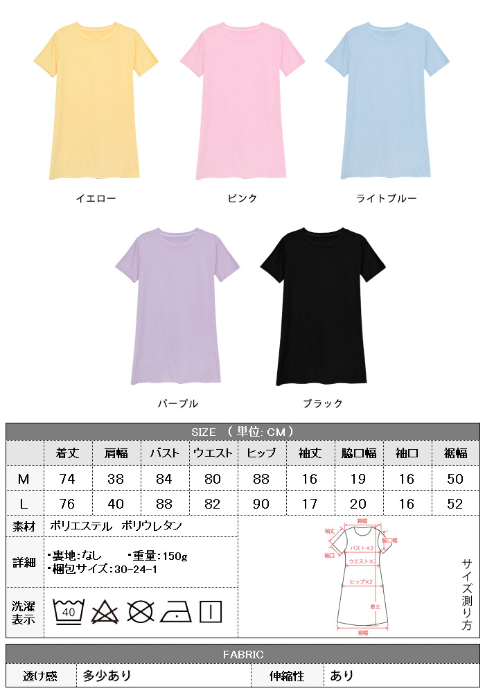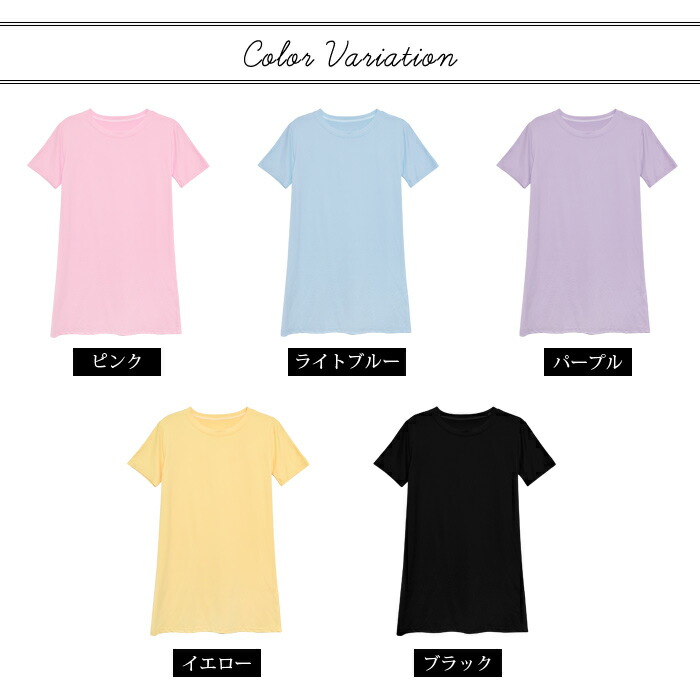 Tシャツ 半袖 ロング ワンピース レ ワンピース 新登場! イエロー ピンク ライトブルー パープル ブラック Mサイズ Lサイズ