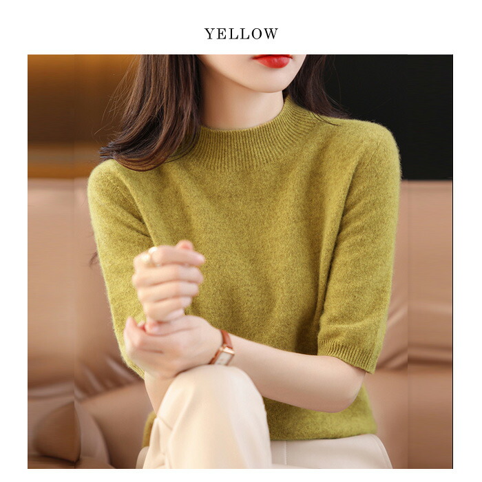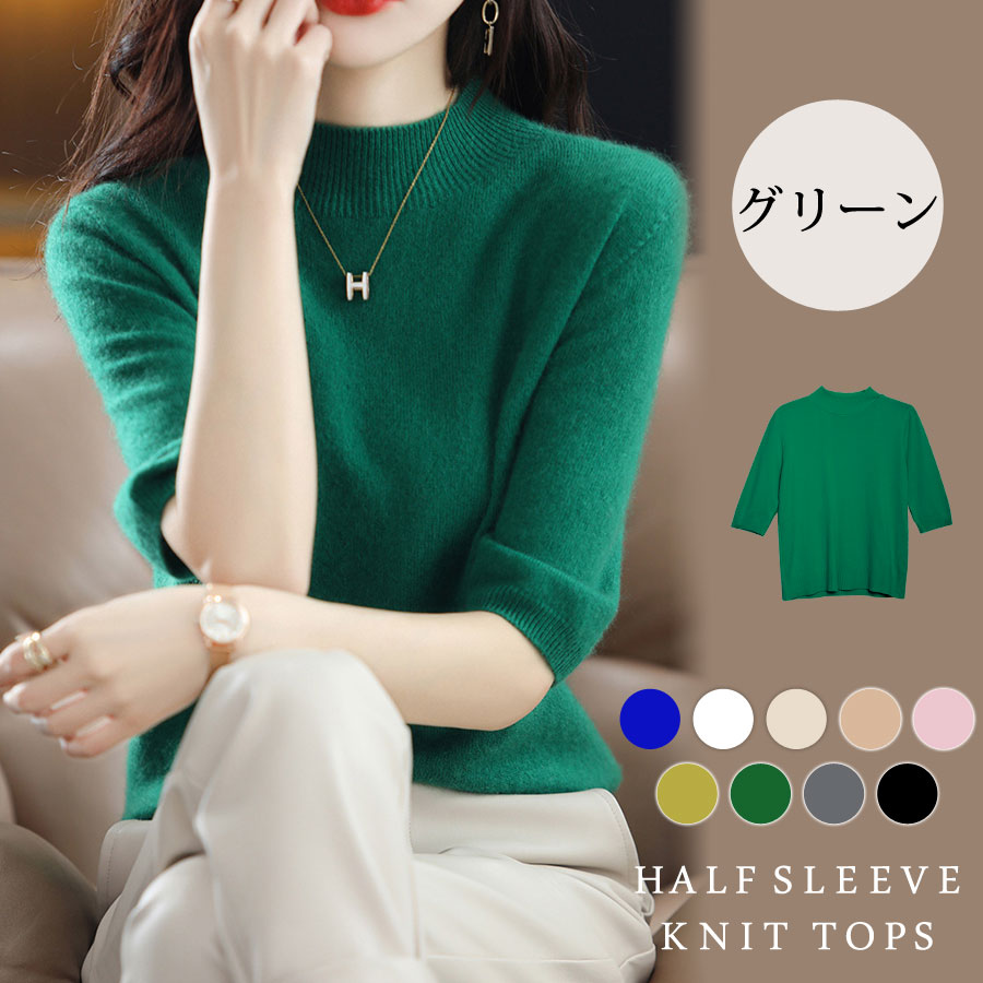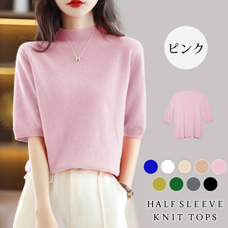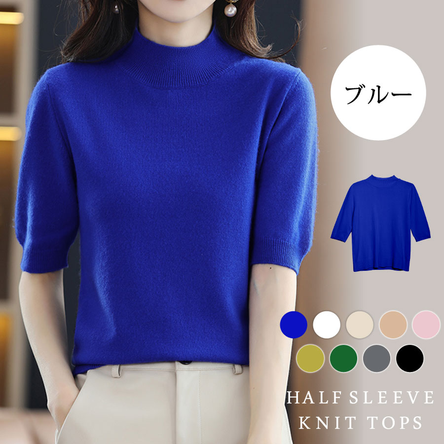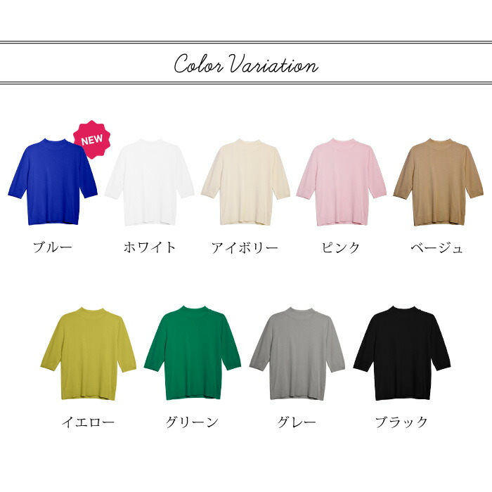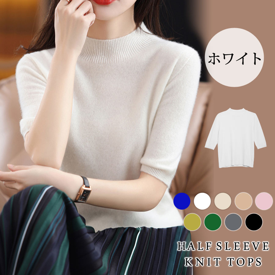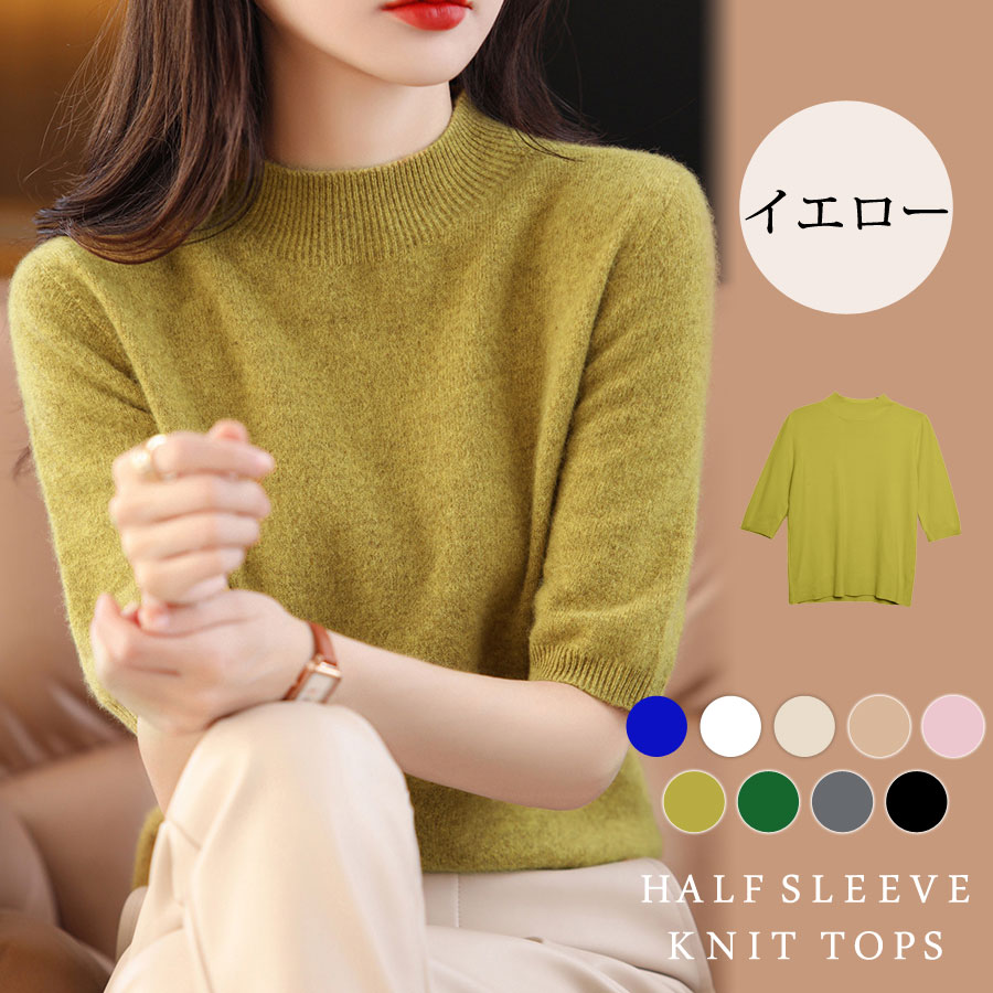 サマーニット レディース 半袖 ハイネ レディースファッション 通販 ホワイト ブルー アイボリー ピンク ベージュ イエロー グリーン グレー ブラック