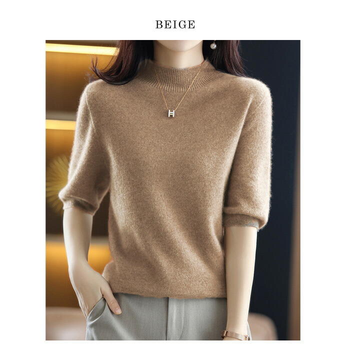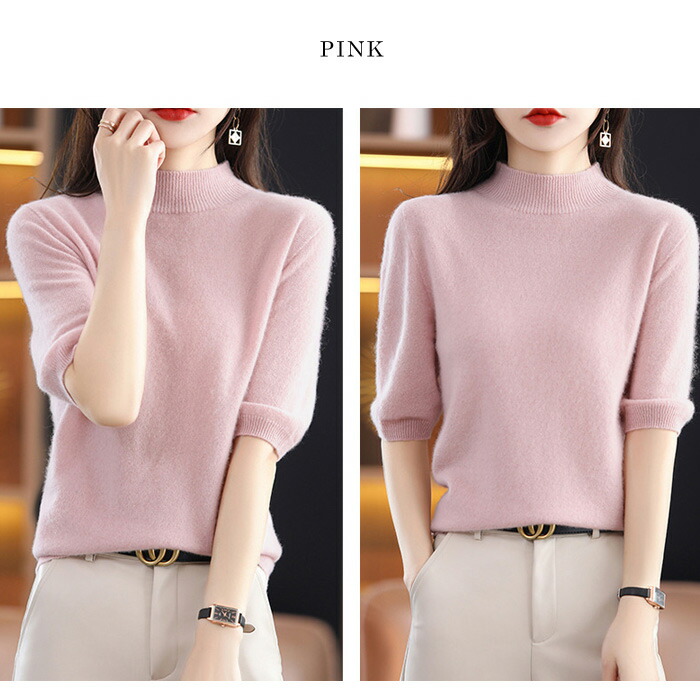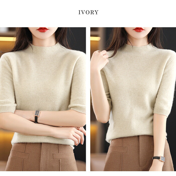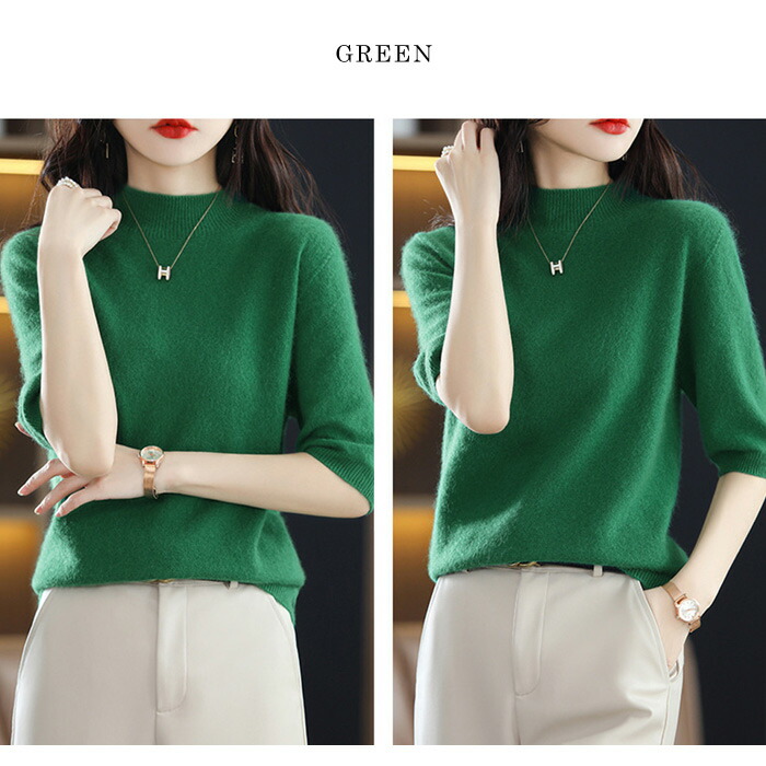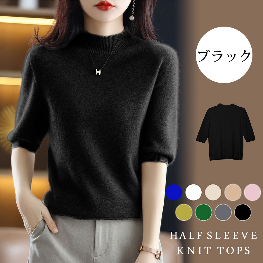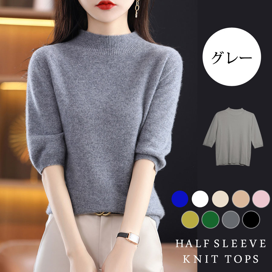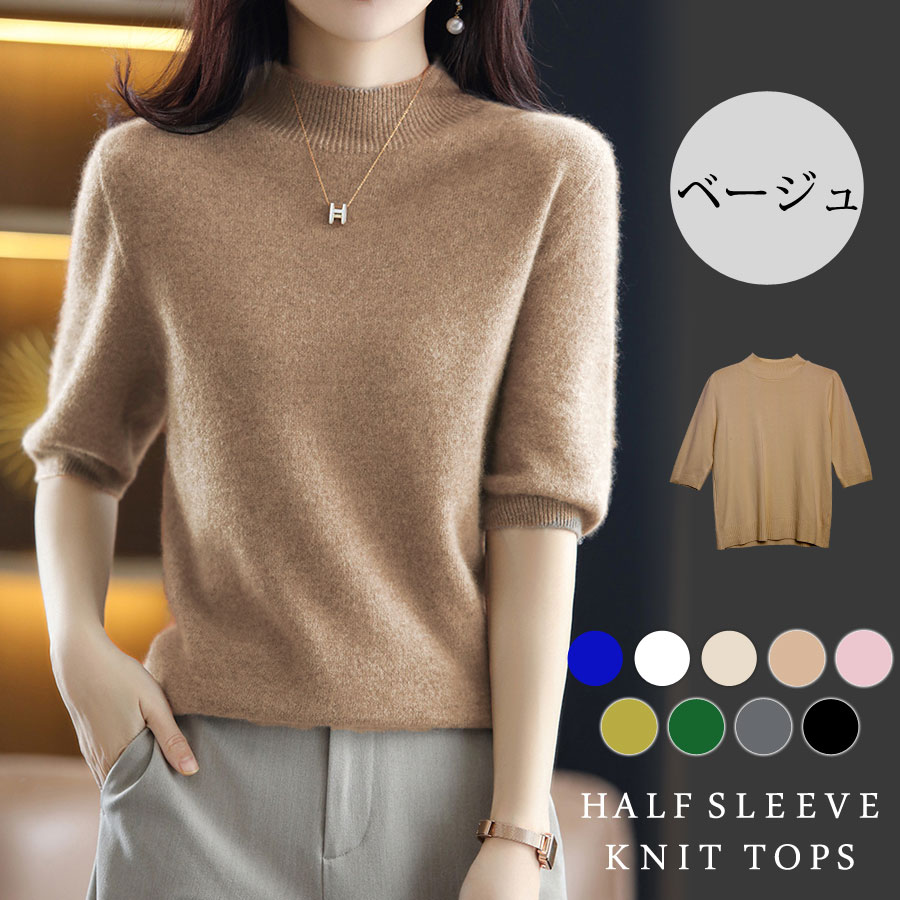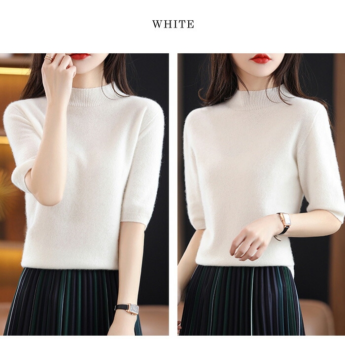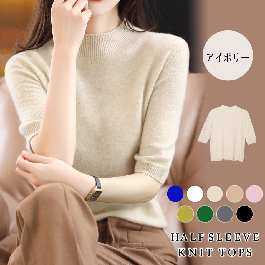 サマーニット レディース 半袖 ハイネ レディースファッション 通販 ホワイト ブルー アイボリー ピンク ベージュ イエロー グリーン グレー ブラック