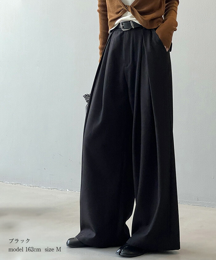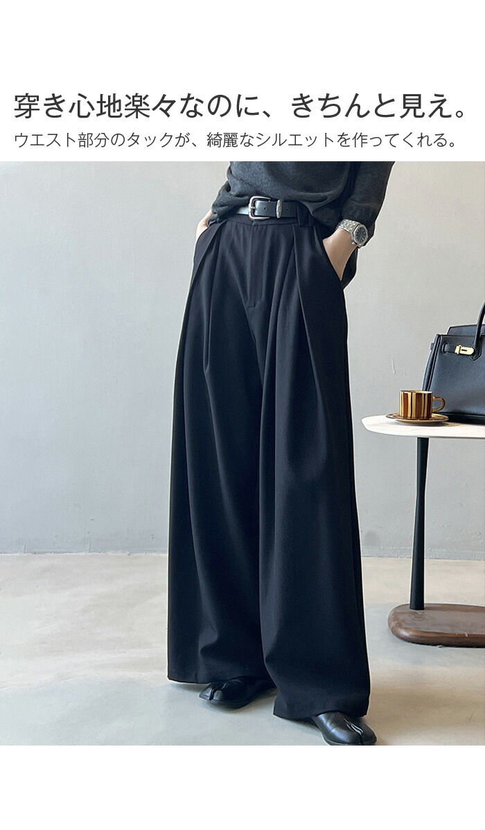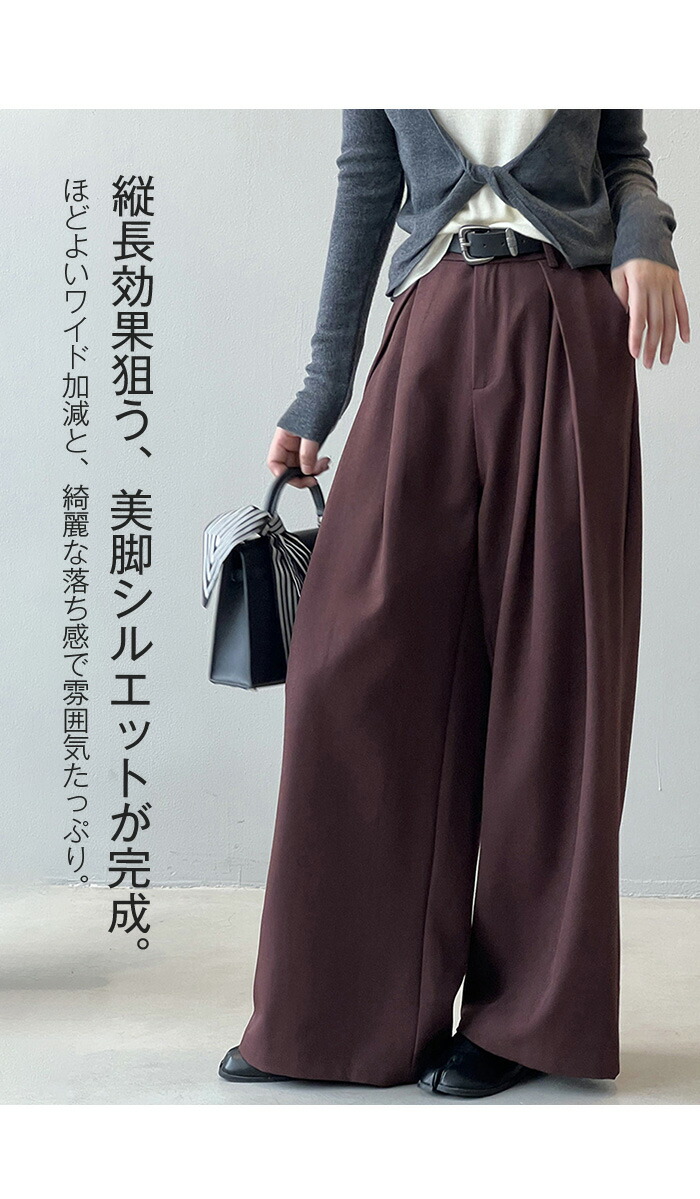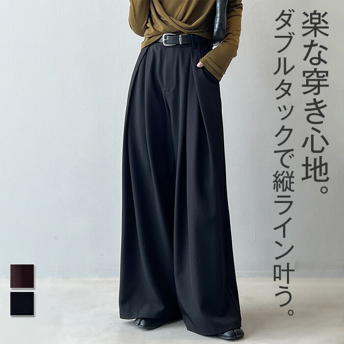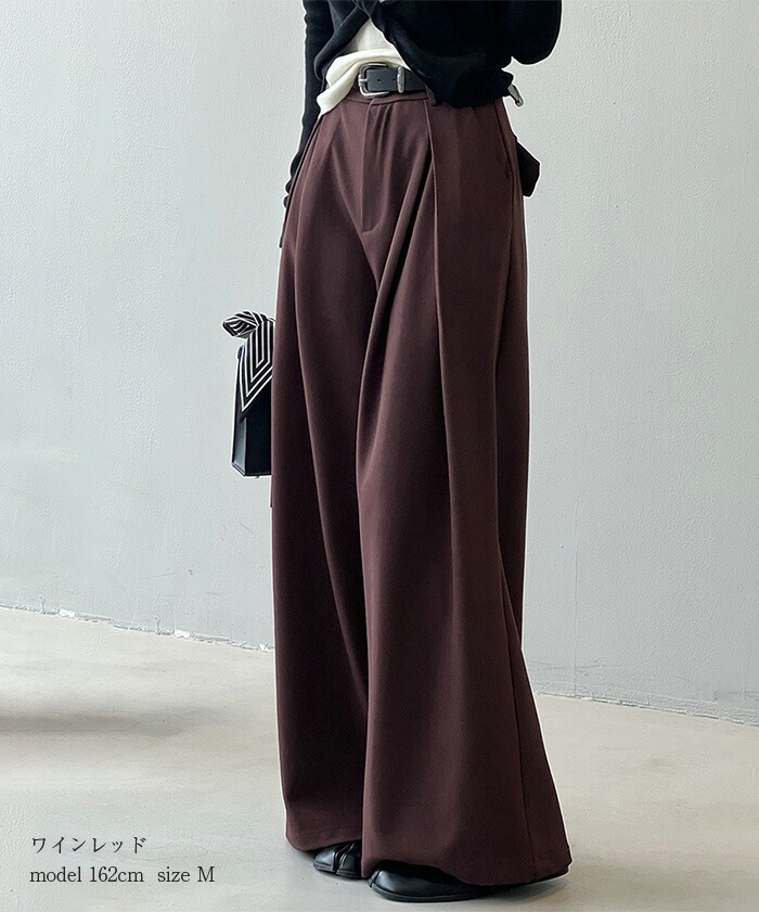 タックワイドパンツ レディース タック ボトムス パンツ 新登場! ブラック ワインレッド M L
