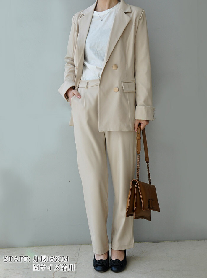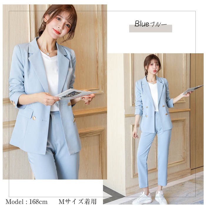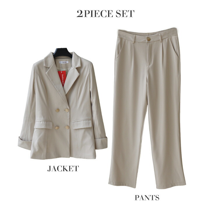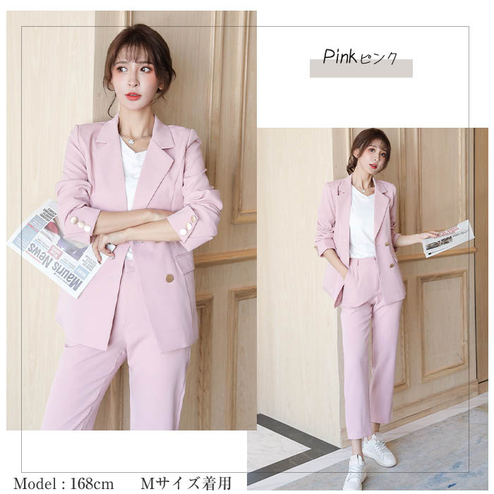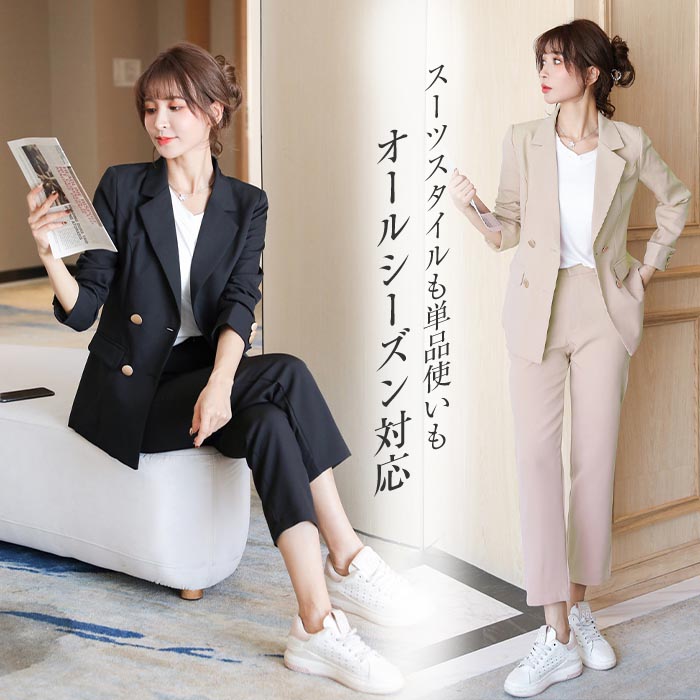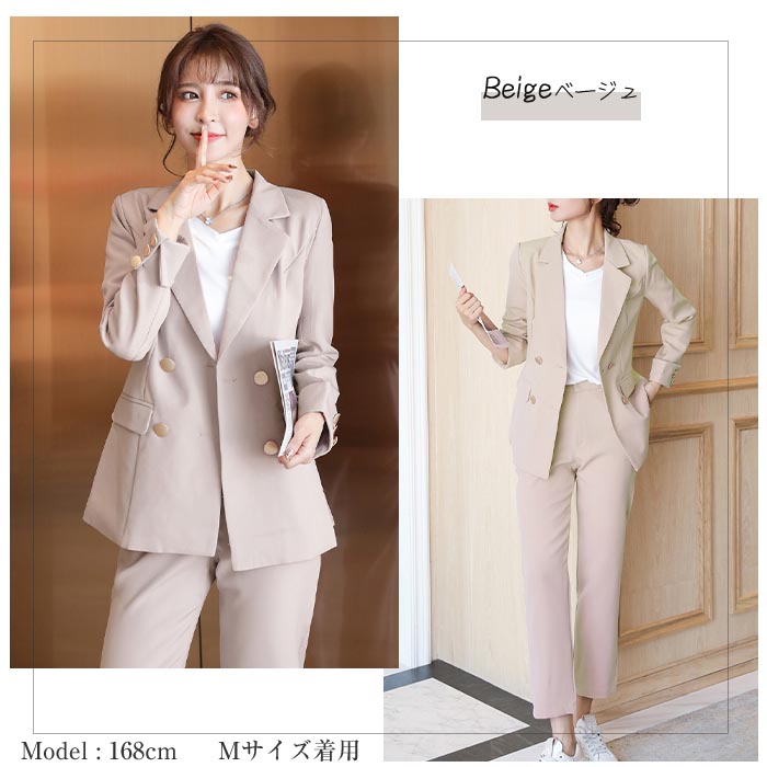 スーツ レディース セットアップ フォ スーツ セットアップ パンツスーツ 通販 S M L XL ブラック ブルー ピンク ベージュ グレー