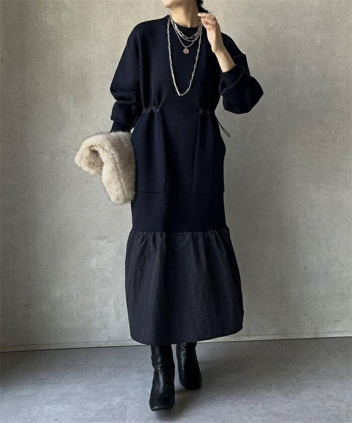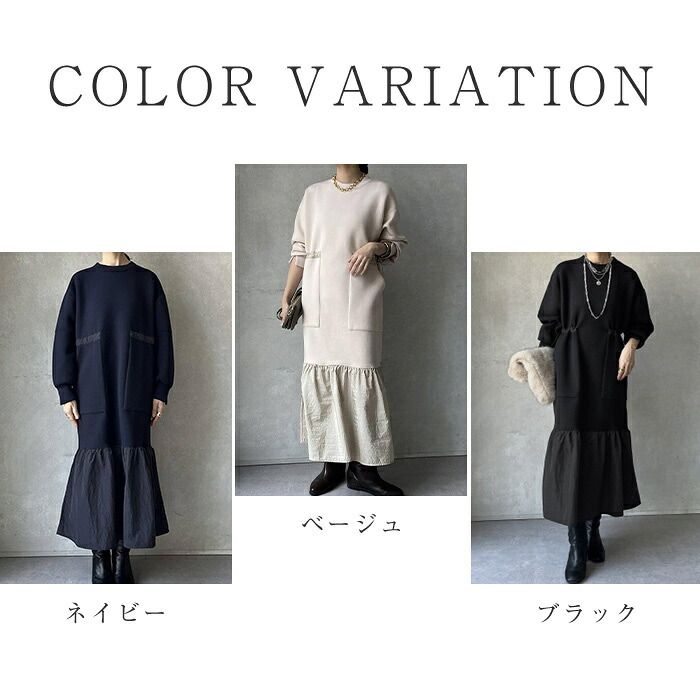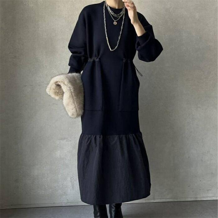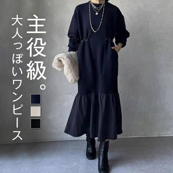 ワンピース レディース 秋冬 ロング ワンピース 超目玉商品 ブラック ネイビー ベージュ