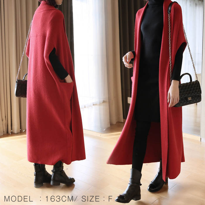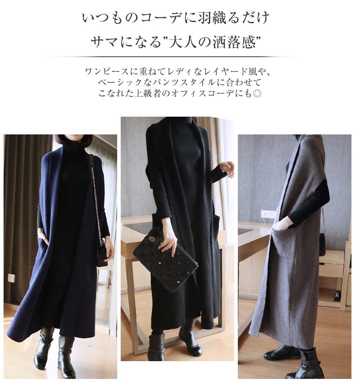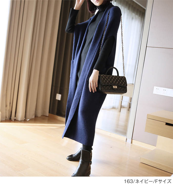 ニットジレ ロングジレ レディース ニ トップス ベスト 豊富 グレー ネイビー レッド ブラック M L