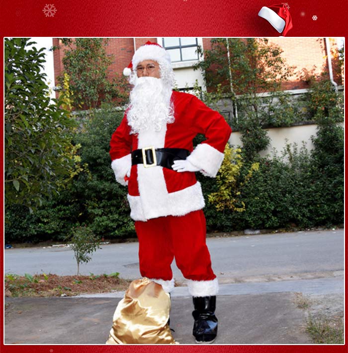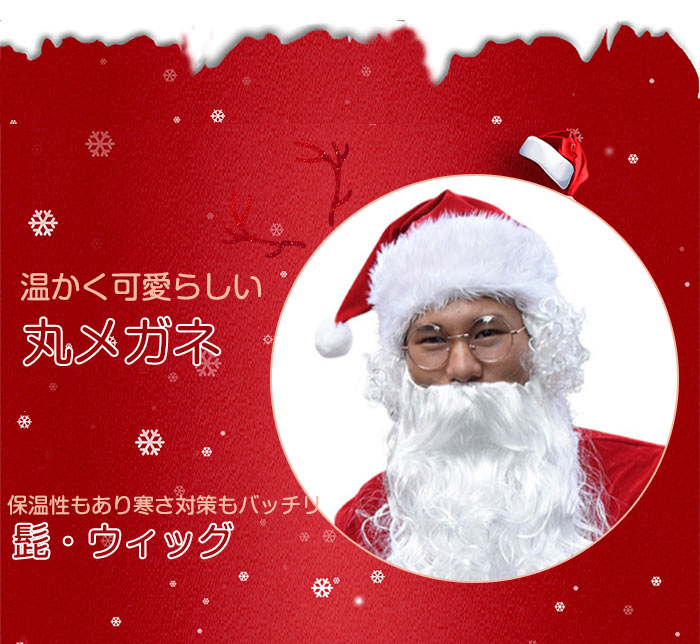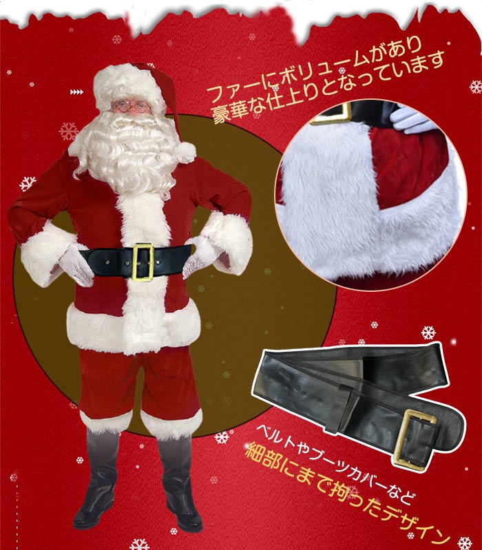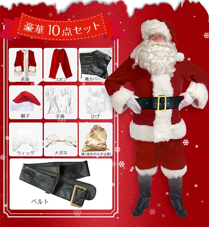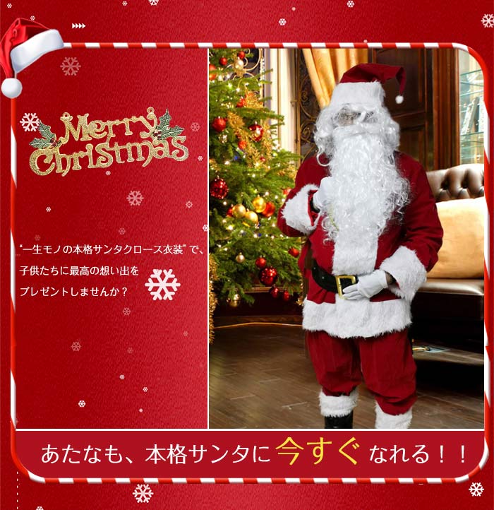 100円OFFクーポン 品質違うサンタクロース サンタコス 厚手 クリスマス サンタクロース コスプレ メンズ ゴージャス トップス ズボン 帽子 ひげ 上品 高品質 サンタコスチューム 10点セット