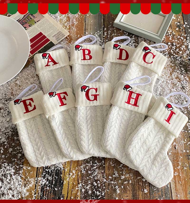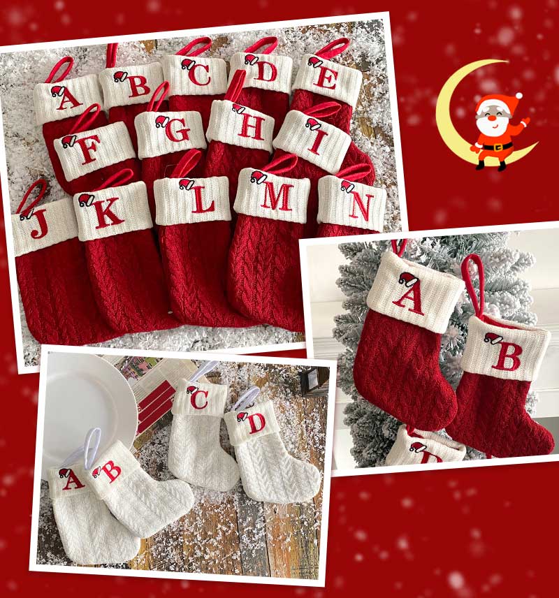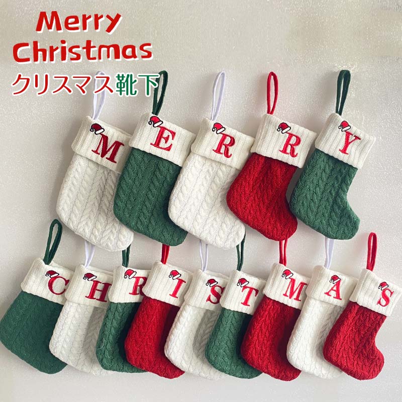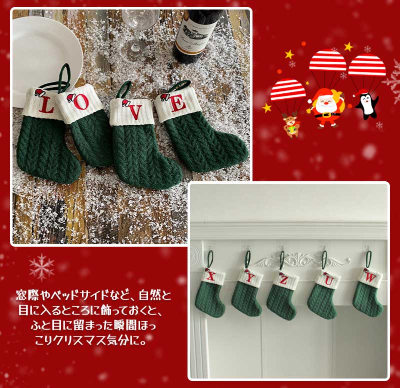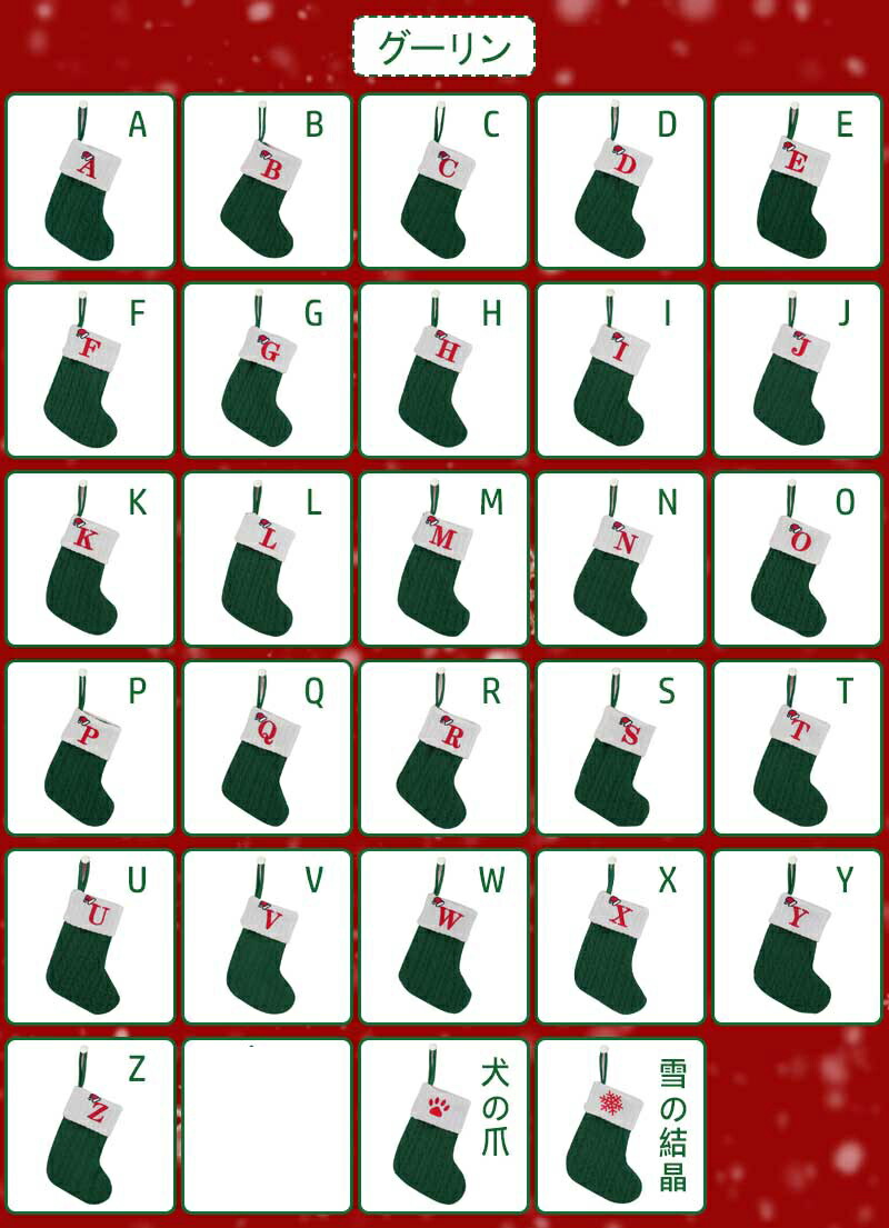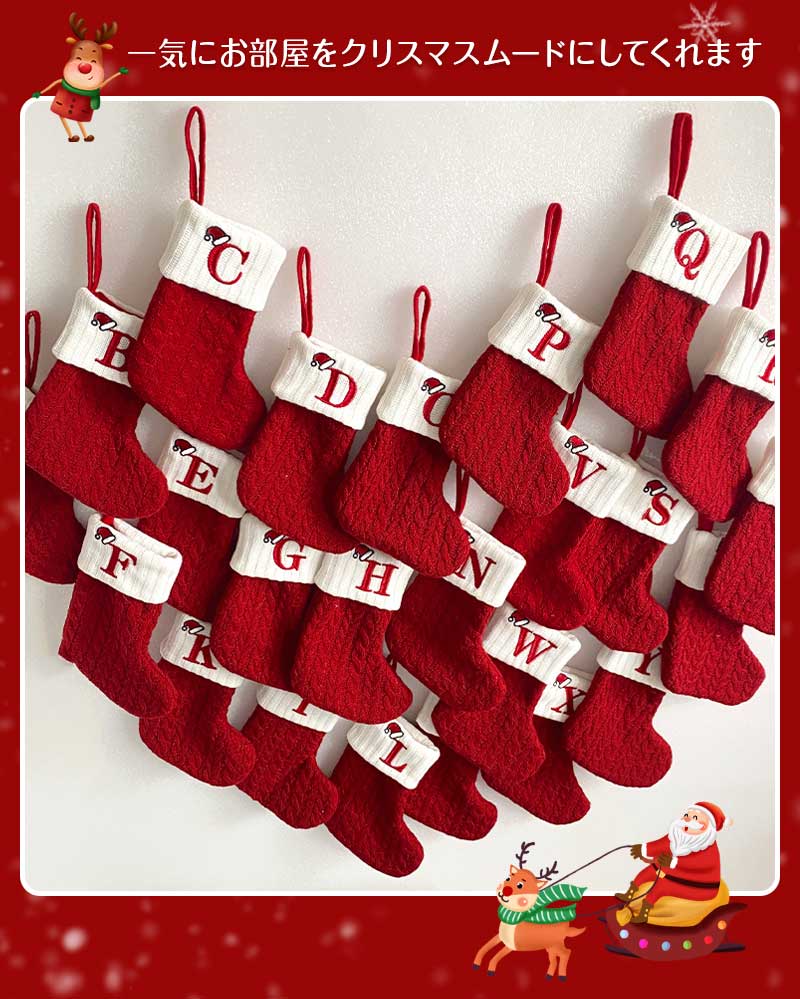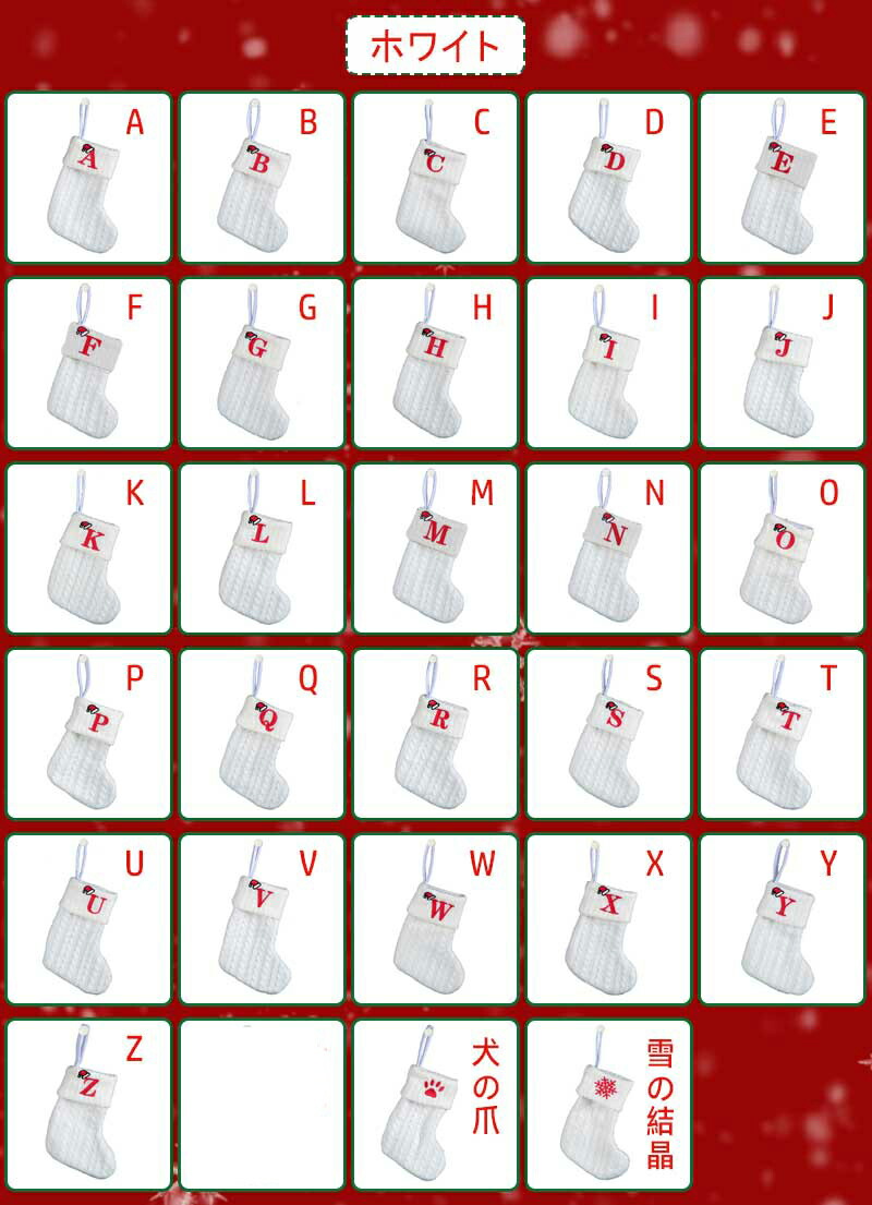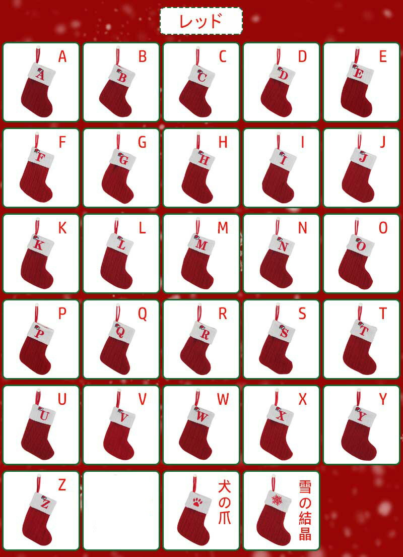 クリスマス 靴下 サンタ プレゼント レッド グーリン ホワイト A B C D E F G H I J K L M N O P Q R S T U V W X Y Z 犬の爪 雪の結晶