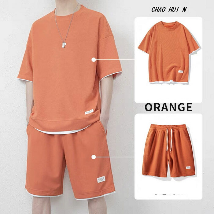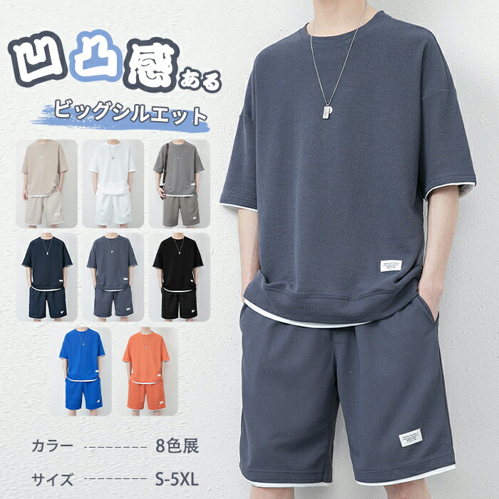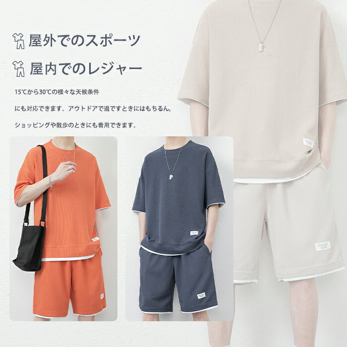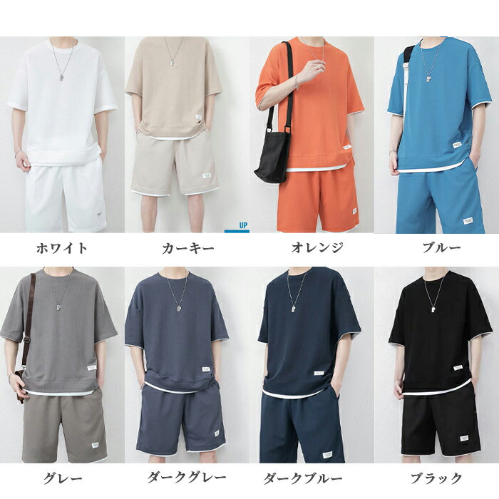 メンズ セットアップ 2点セット 半袖 メンズファッション 特集 ホワイト カーキー オレンジ ブルー グレー ダークグレー ダークブルー ブラック S M L XL 2XL 3XL 4XL 5XL