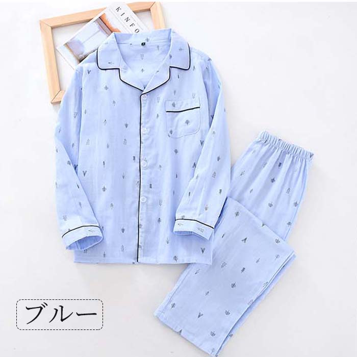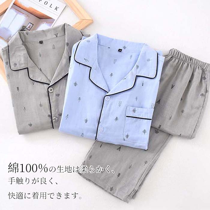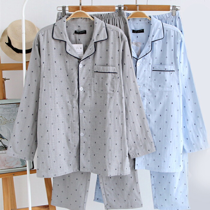 メンズ 綿100% パジャマ ルームウ メンズ ナイトウェア ルームウェア パジャマ 続々入荷中 グレー ブルー M L XL