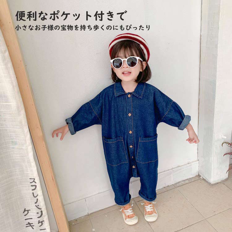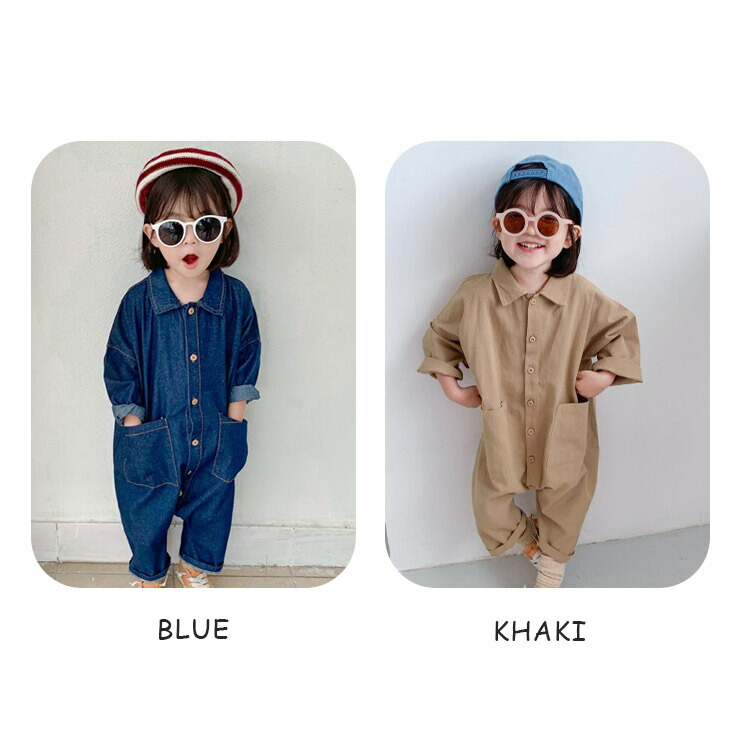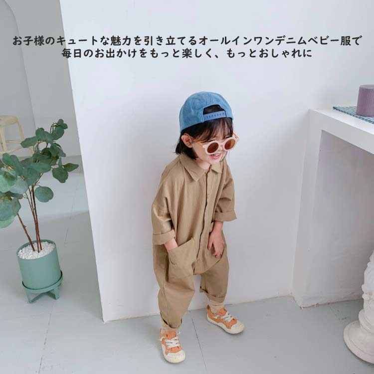 オールインワン デニム ベビー服 キッ キッズ ベビー マタニティ 超目玉商品 ブルー カーキー 80cm 90cm 100cm 110cm 120cm