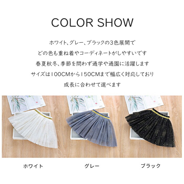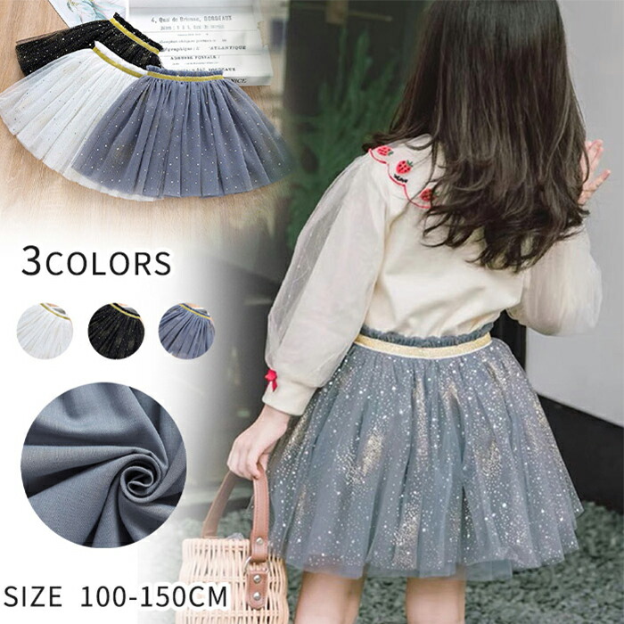 チュールスカート 女の子 スカート フ キッズ ボトムス スカート 早い者勝ち ホワイト グレー ブラック 100cm 110cm 120cm 130cm 140cm 150cm