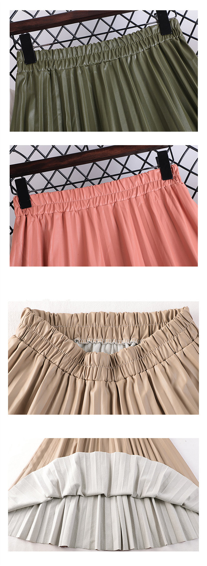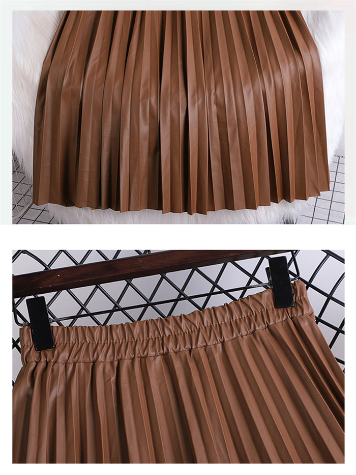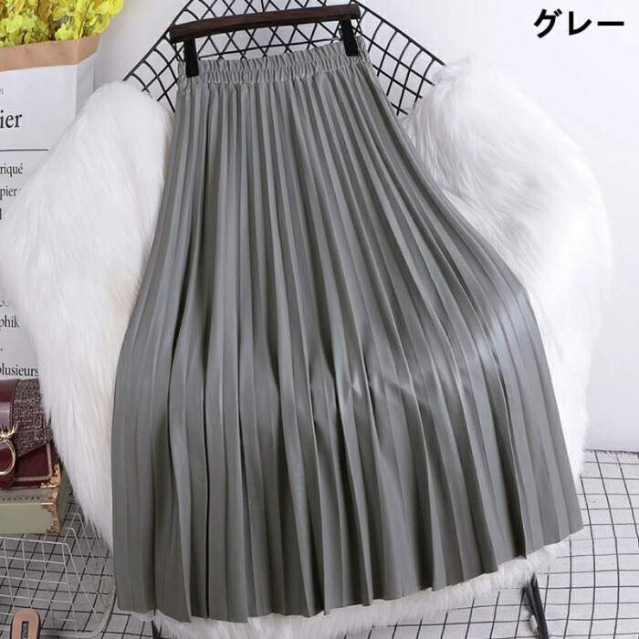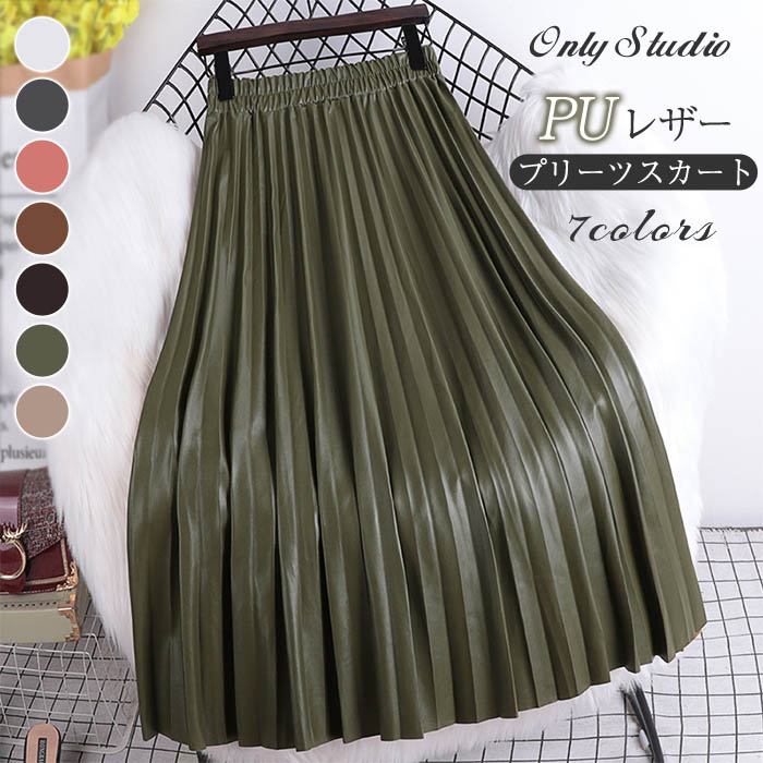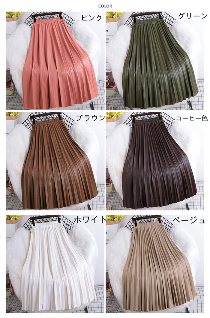 プリーツスカート ボトムス PUレザー ボトムス スカート 通販 ピンク グリーン ブラウン コーヒー色 ホワイト ベージュ ブラック グレー