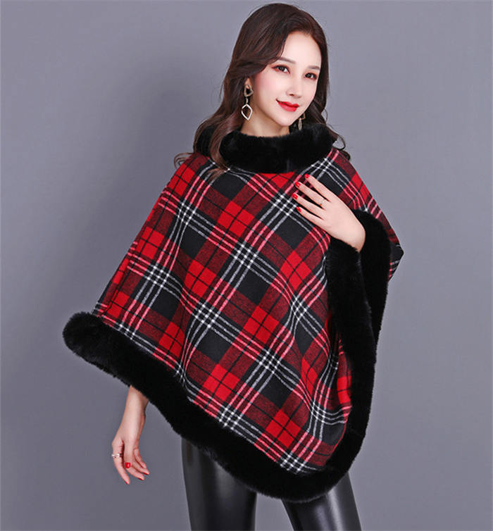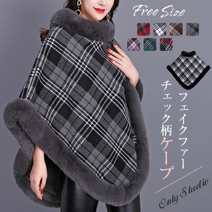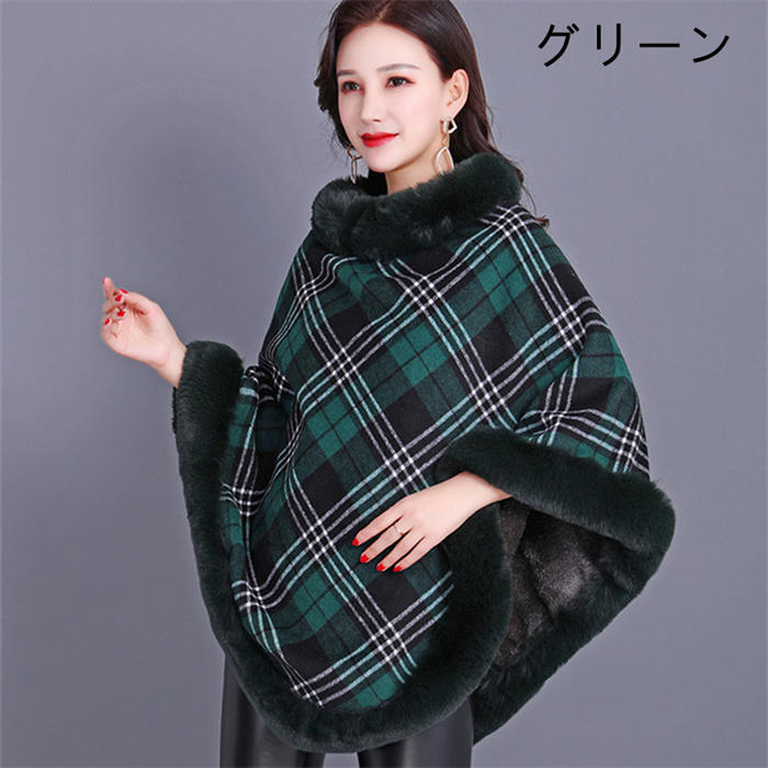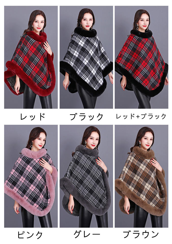ポンチョ フェイクファー ケープ マン レディースファッション 豊富な品揃え レッド+ブラック レッド ブラック ピンク グレー ブラウン グリーン