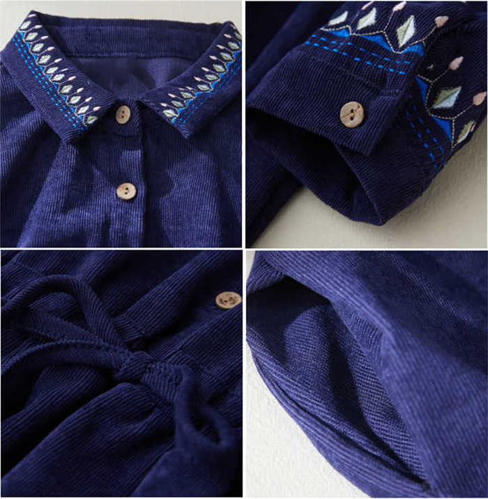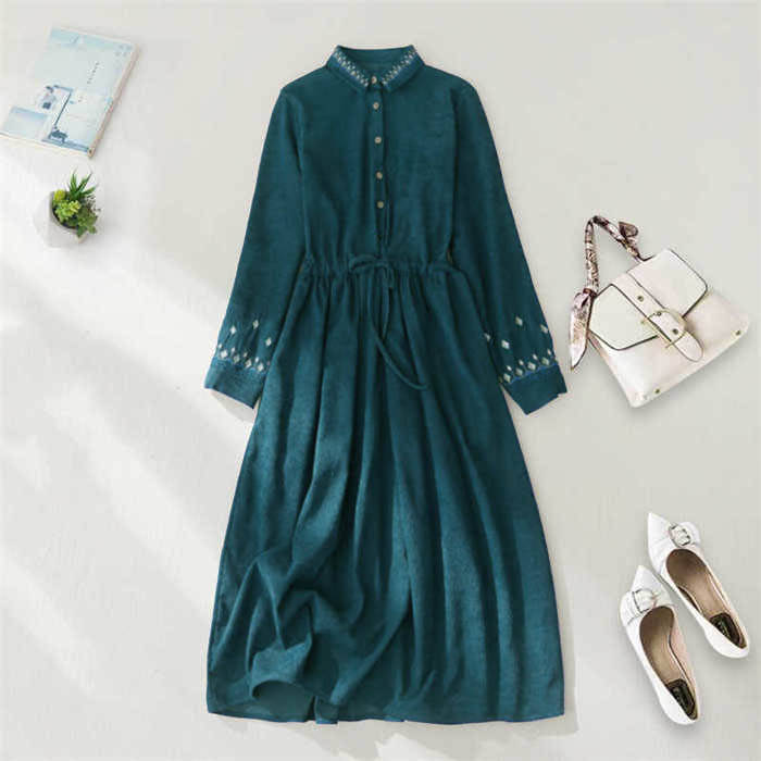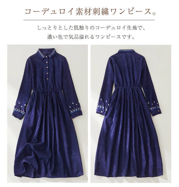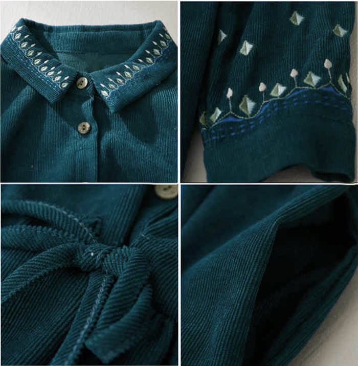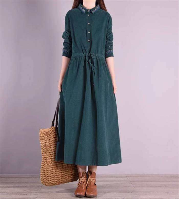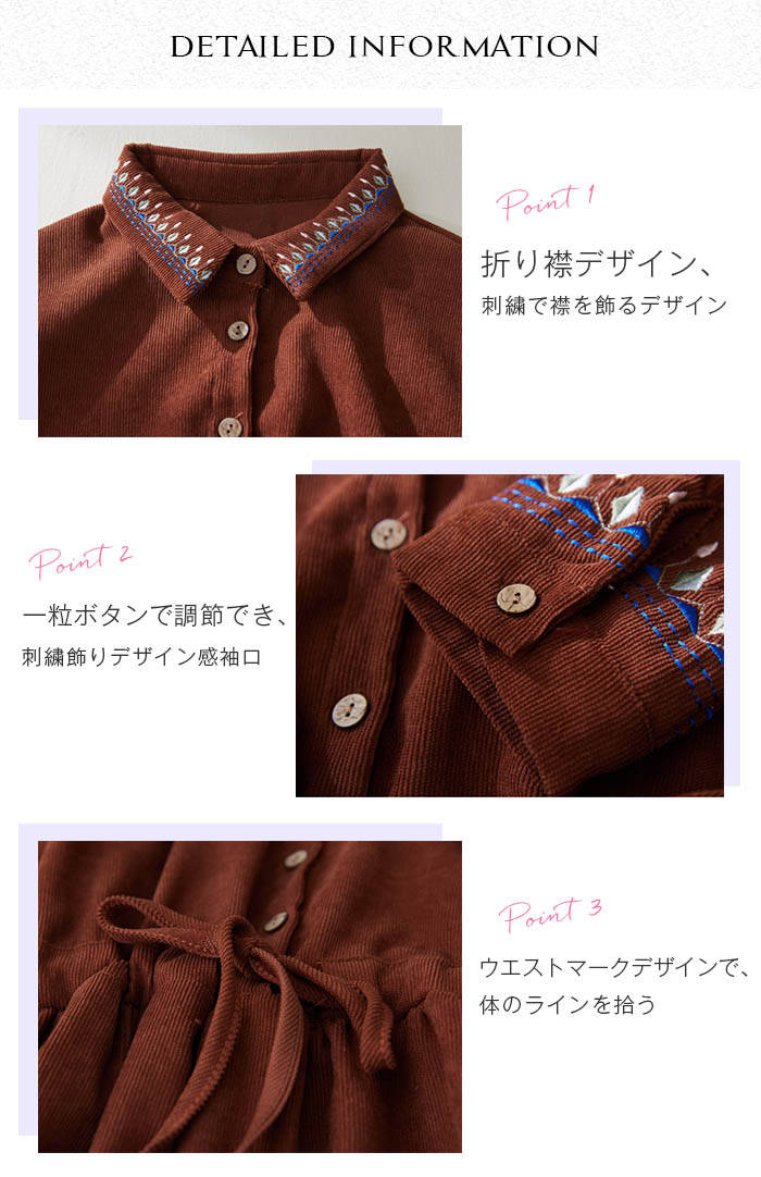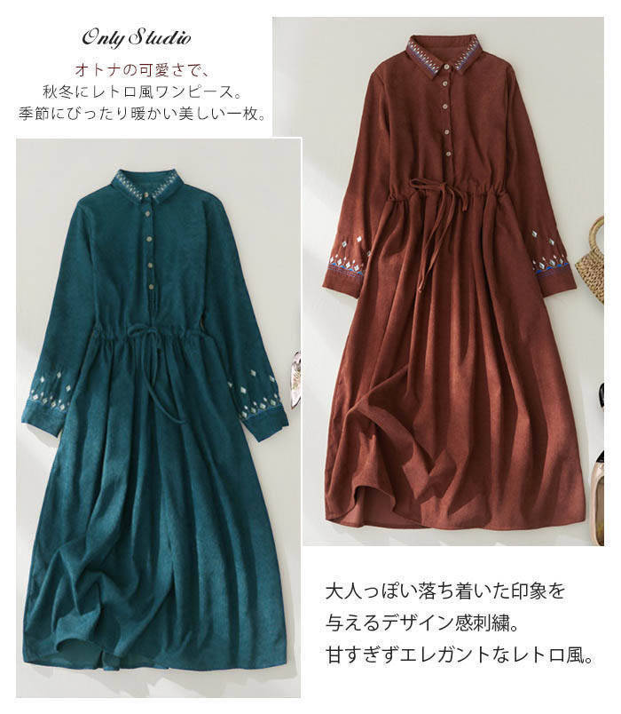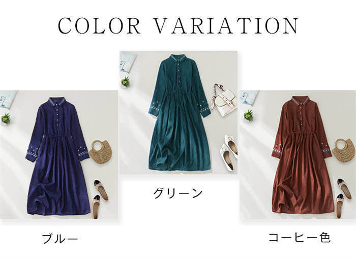 コーデュロイ ワンピース 刺繍 レディ レディースファッション 新登場! ブルー グリーン コーヒー色 M L XL 2XL