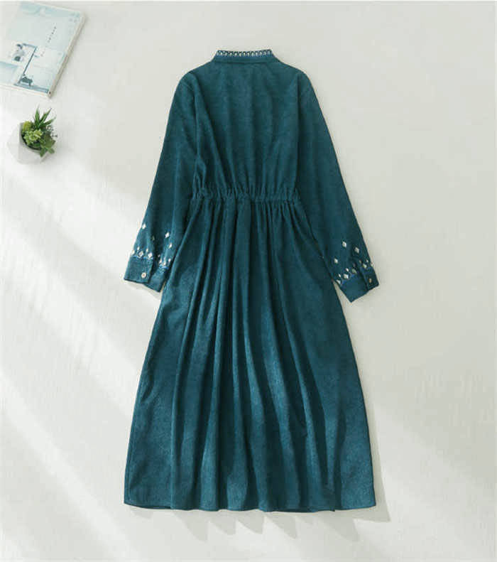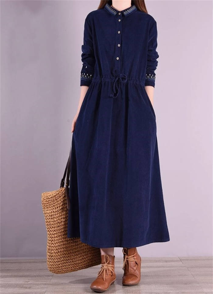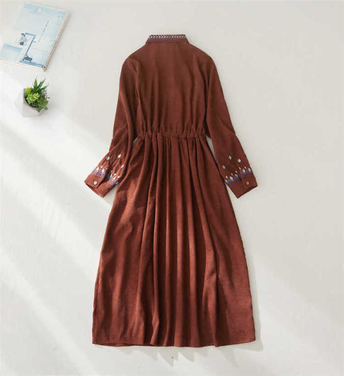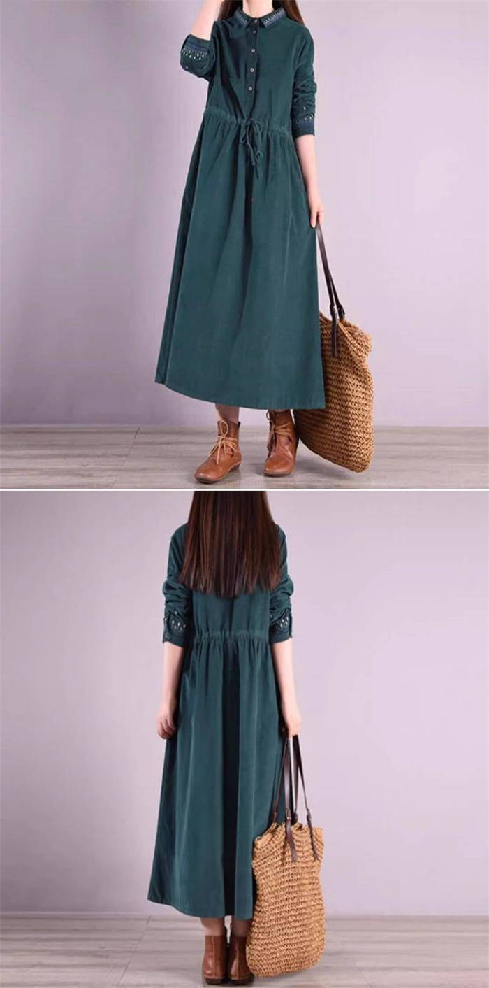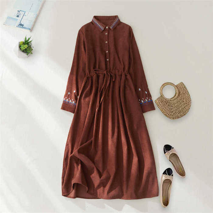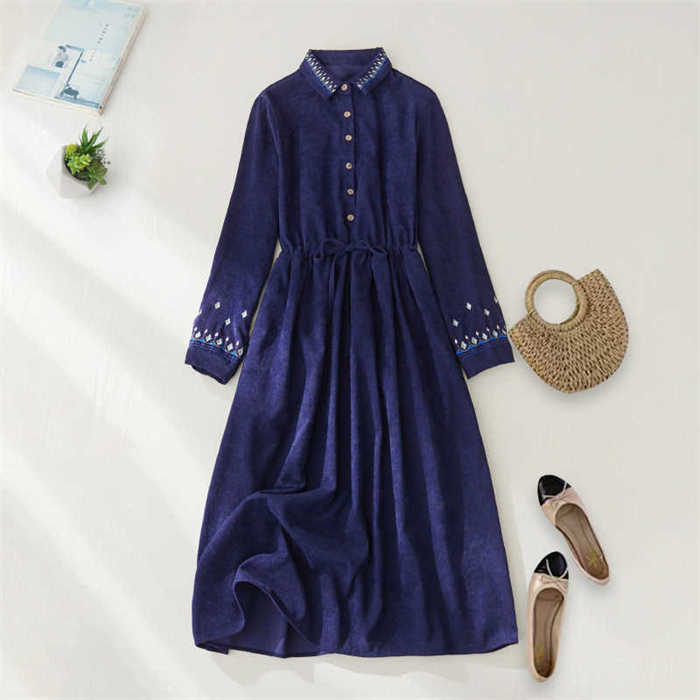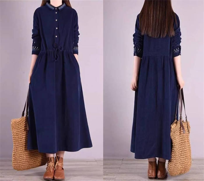 コーデュロイ ワンピース 刺繍 レディ レディースファッション 新登場! ブルー グリーン コーヒー色 M L XL 2XL