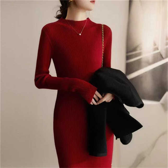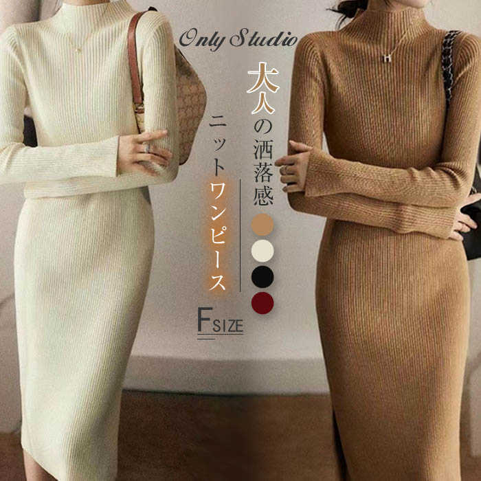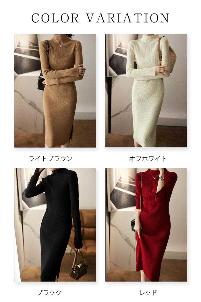 ニット ワンピース レディース ハーフ レディースファッション 新登場! ライトブラウン オフホワイト ブラック レッド