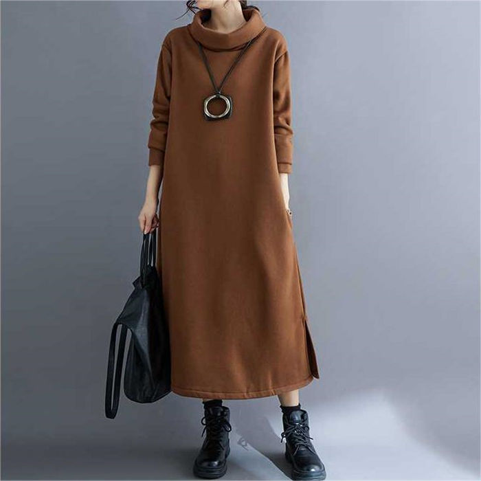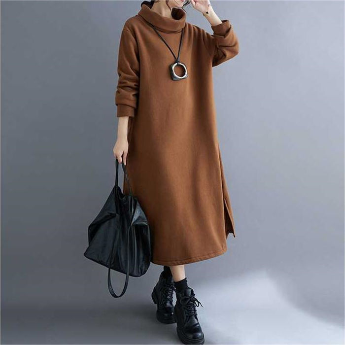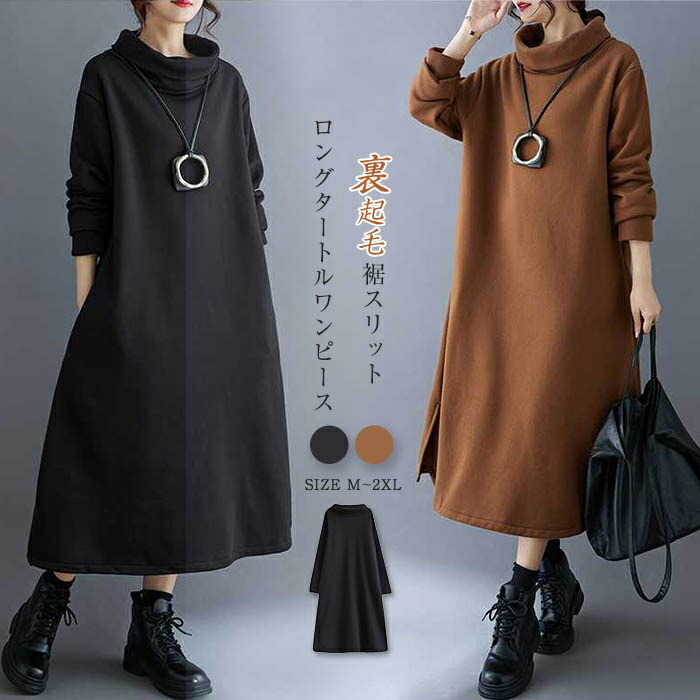 裏起毛 ワンピース 長袖 40代 秋冬 レディースファッション 続々登場 ブラック コーヒー色 M L XL 2XL