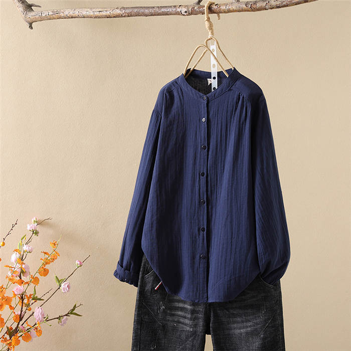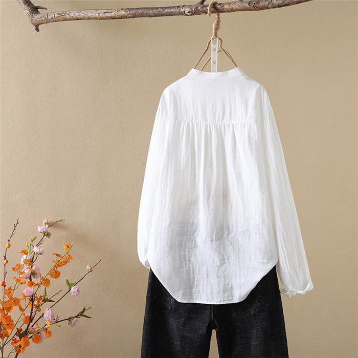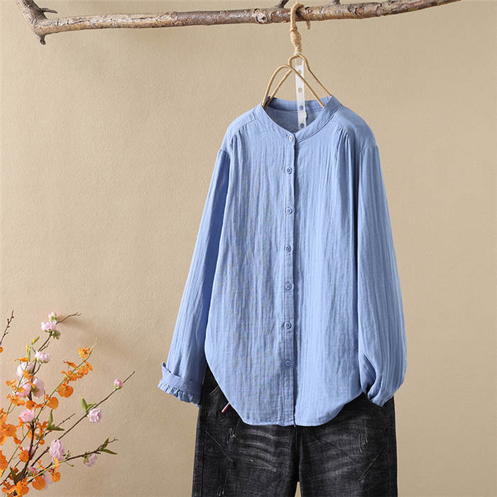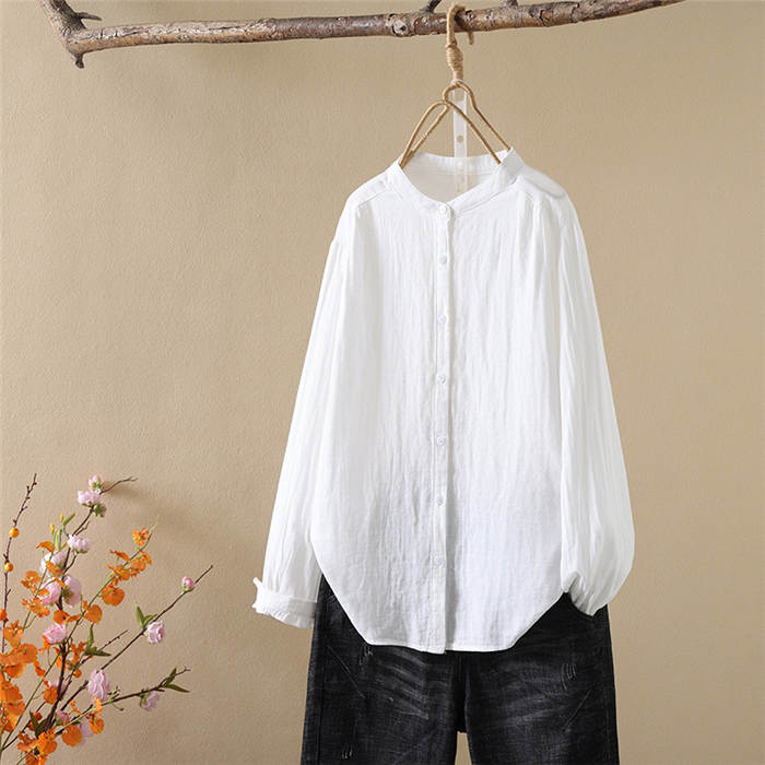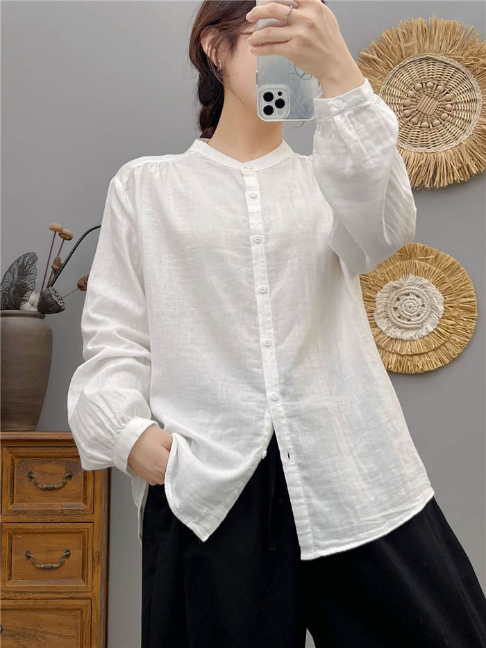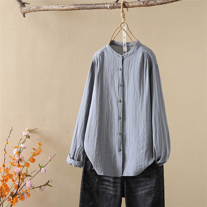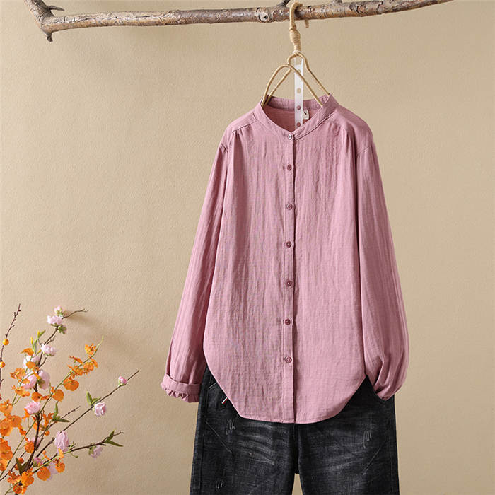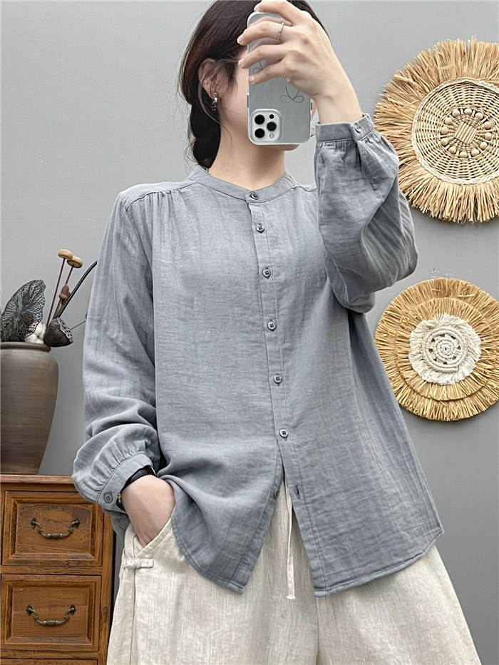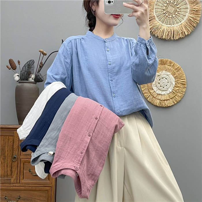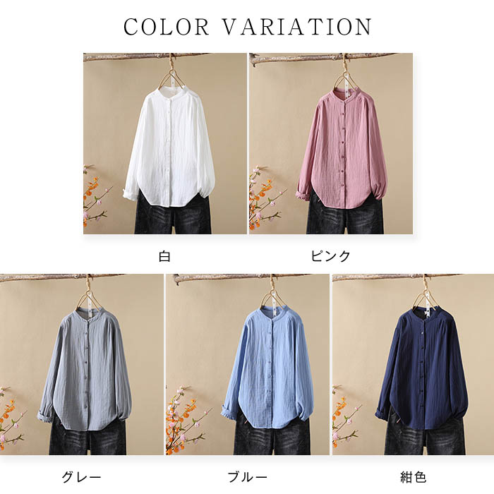 クーポンで2180円 バンドカラー ガ トップス シャツ ブラウス 新登場! 白 グレー 紺色 ブルー ピンク S M L