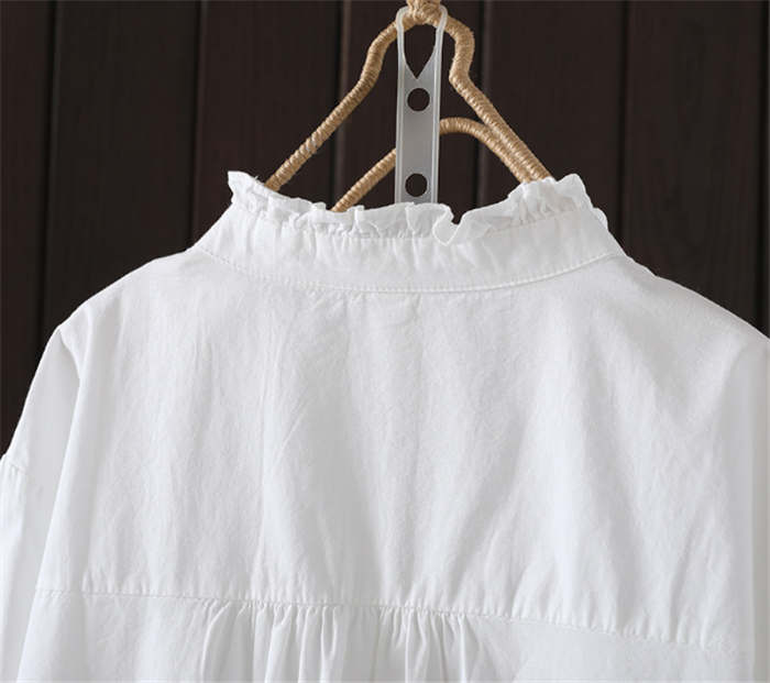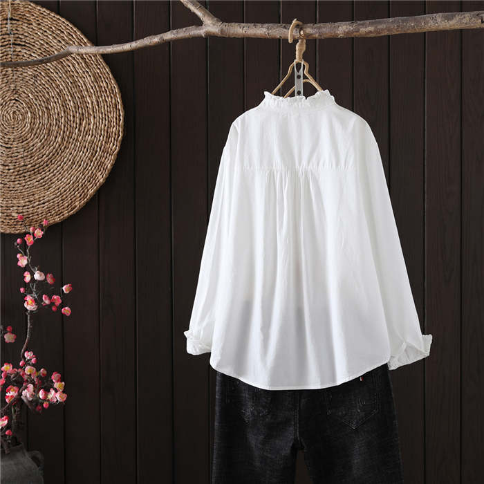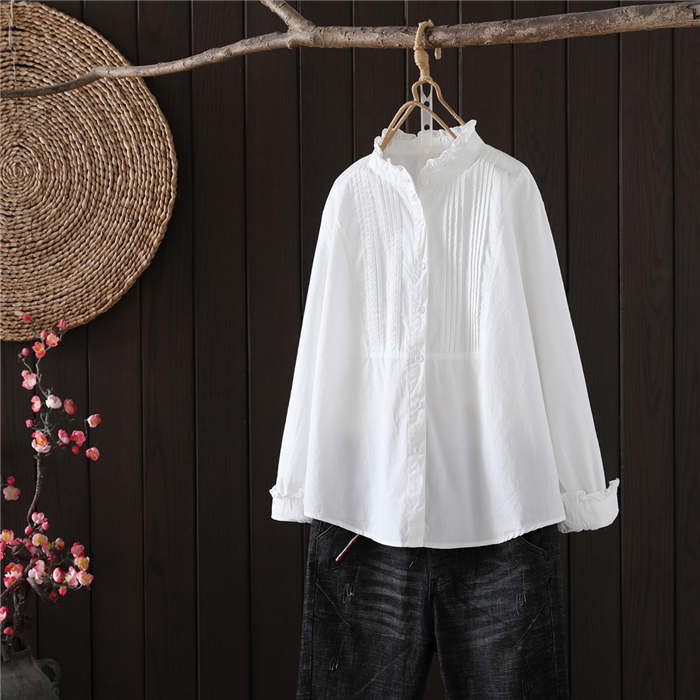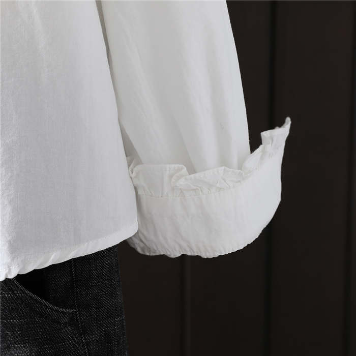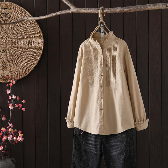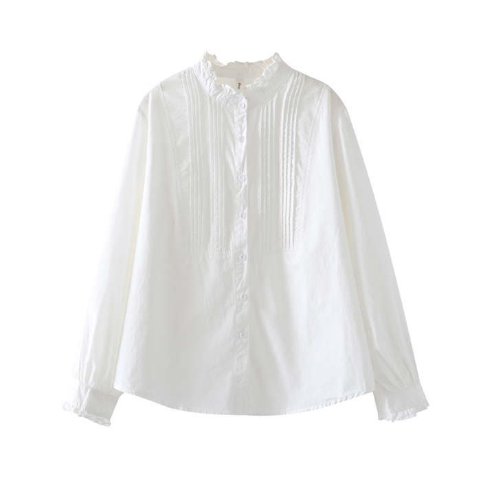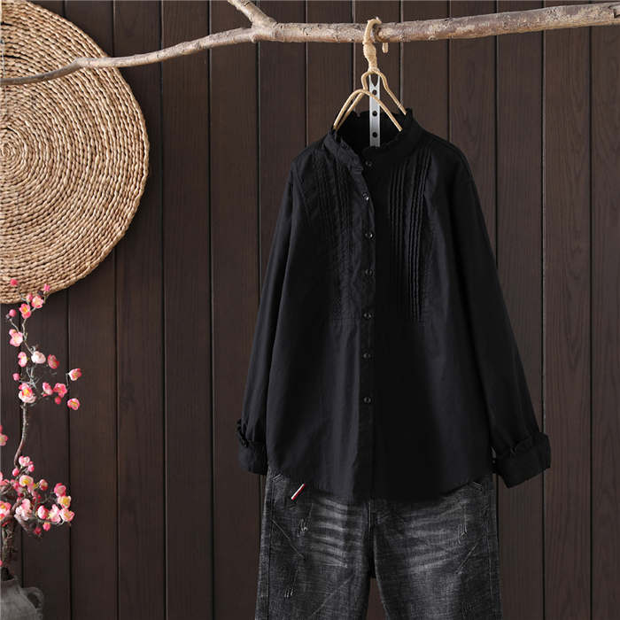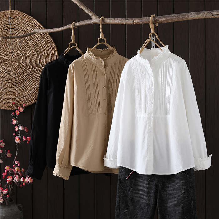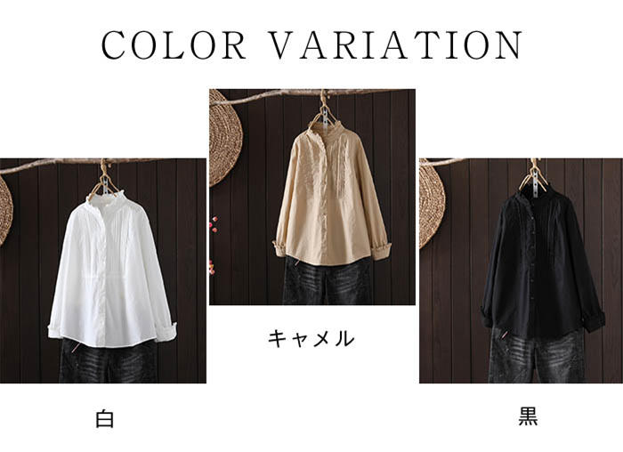 フリル襟 シャツ ブラウス 長袖 立ち トップス シャツ ブラウス 続々登場 黒 白 キャメル