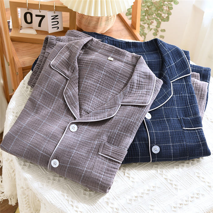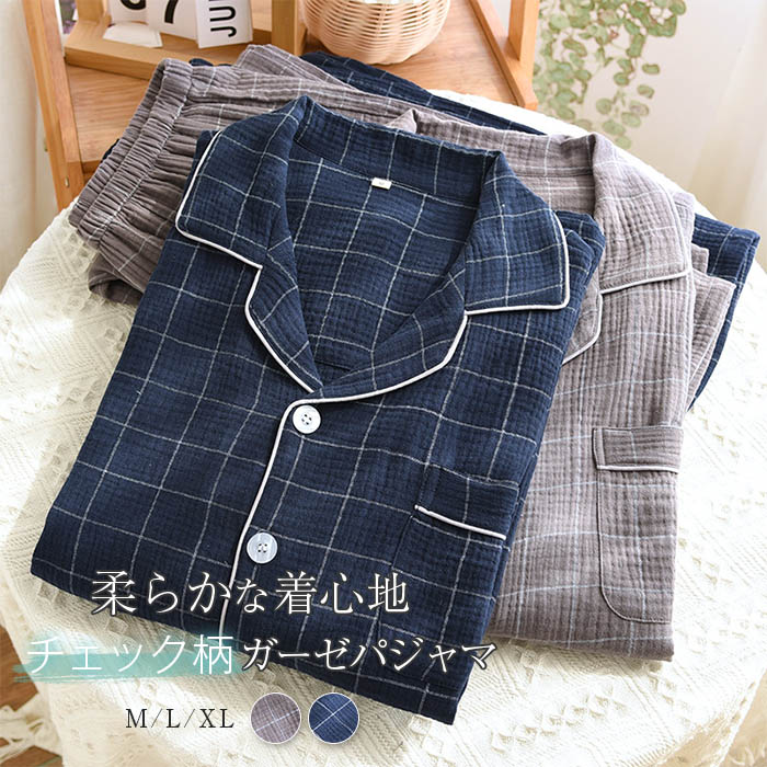 ダブルガーゼ パジャマ ルームウェア インナー 下着 ナイトウエア 続々入荷中 グレー 紺色 M L XL