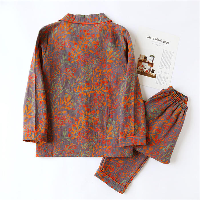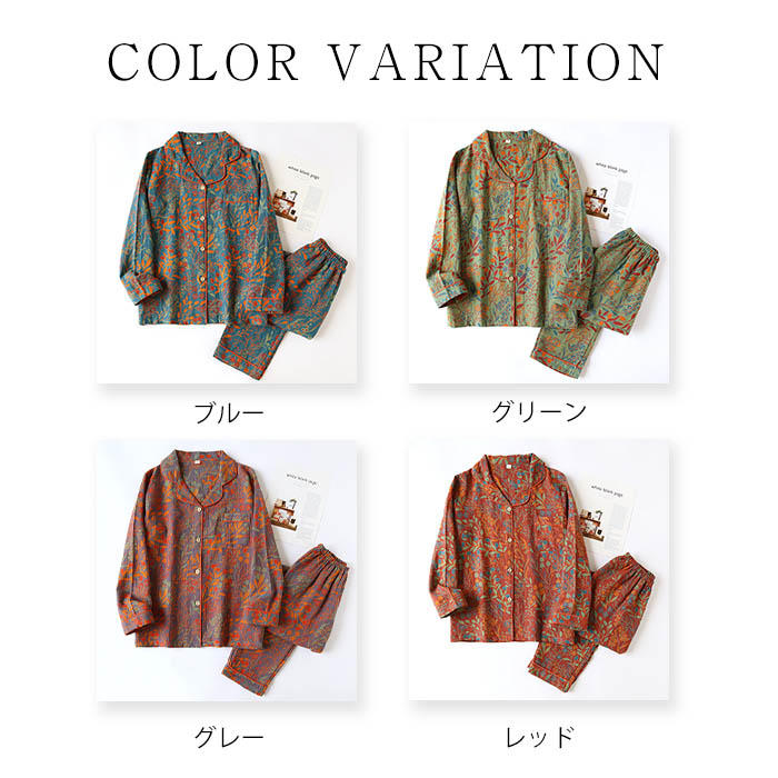 ガーゼ パジャマ レディース 花柄 総 レディース ナイトウェア ルームウェア ルームウェア 上下セット 通販 ブルー グリーン グレー レッド M L XL