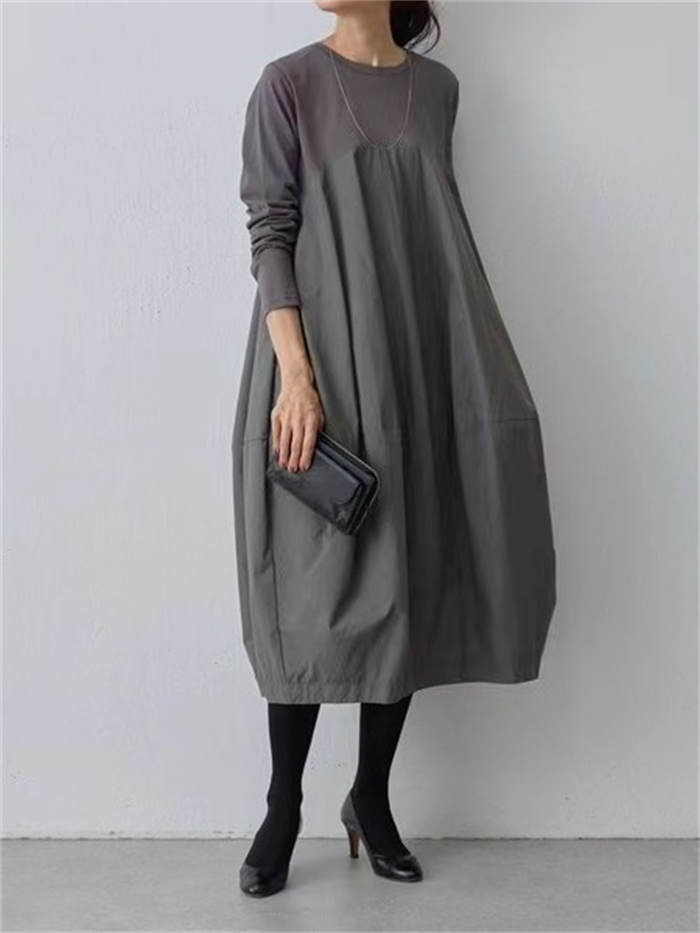 バルーン ワンピース レディース 秋 レディースファッション 続々登場 グレー ブラック