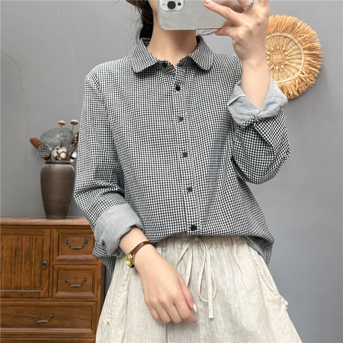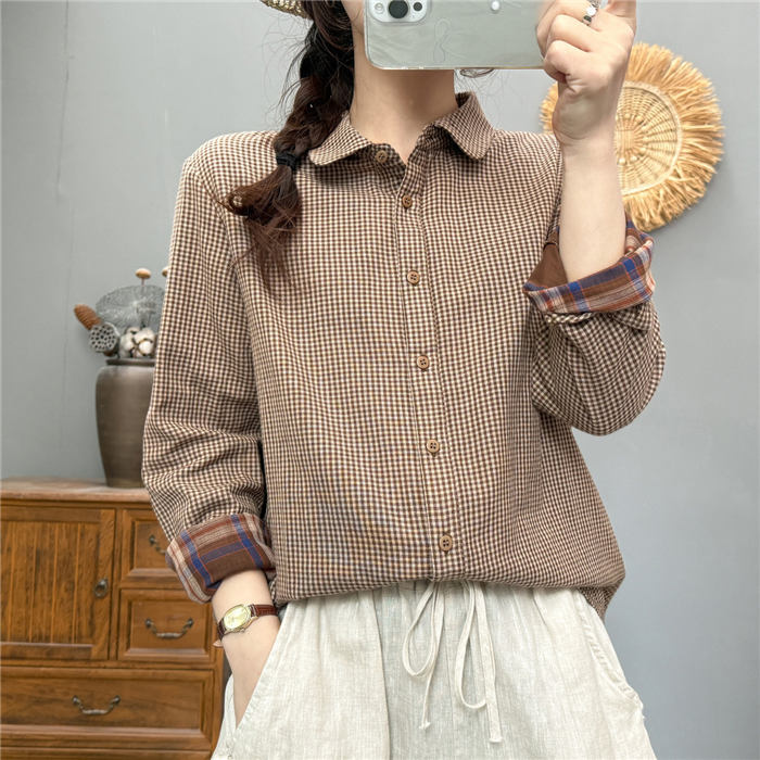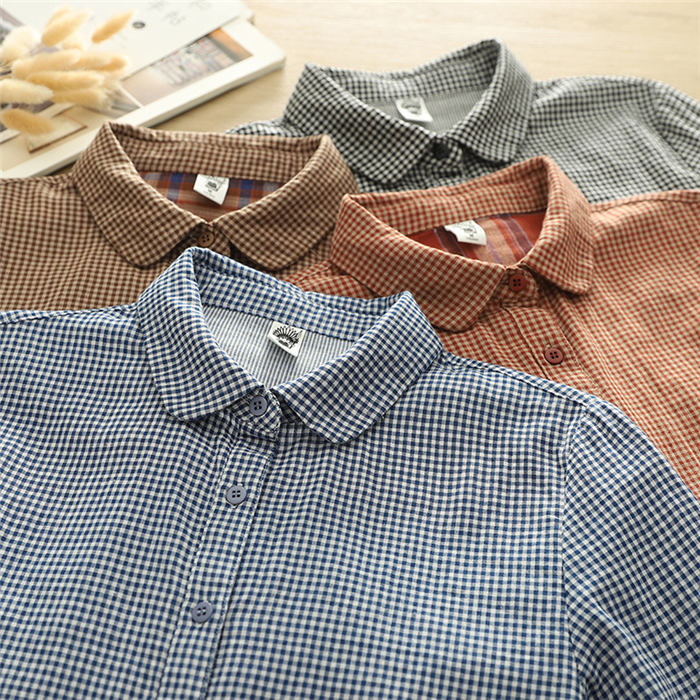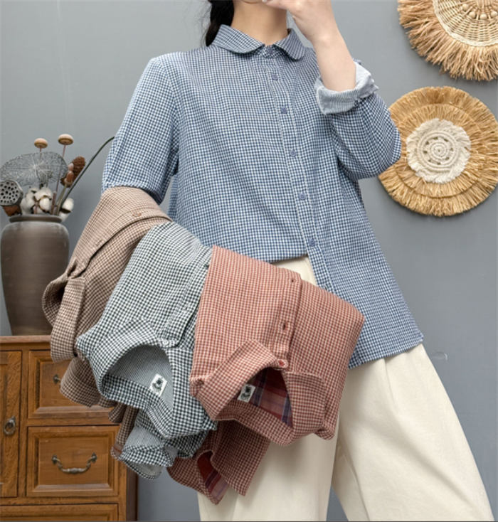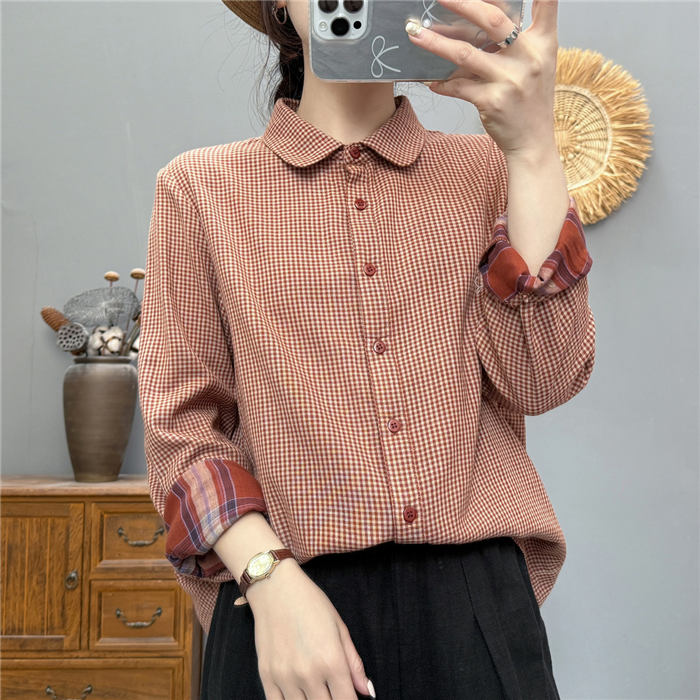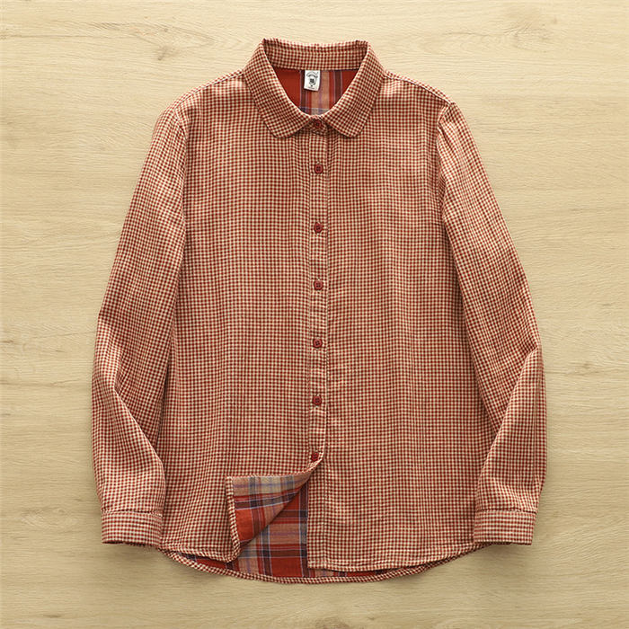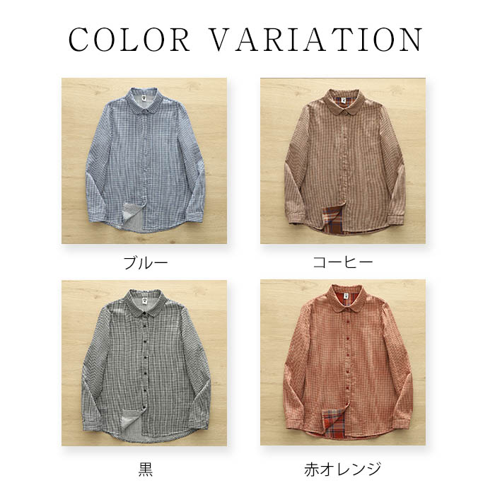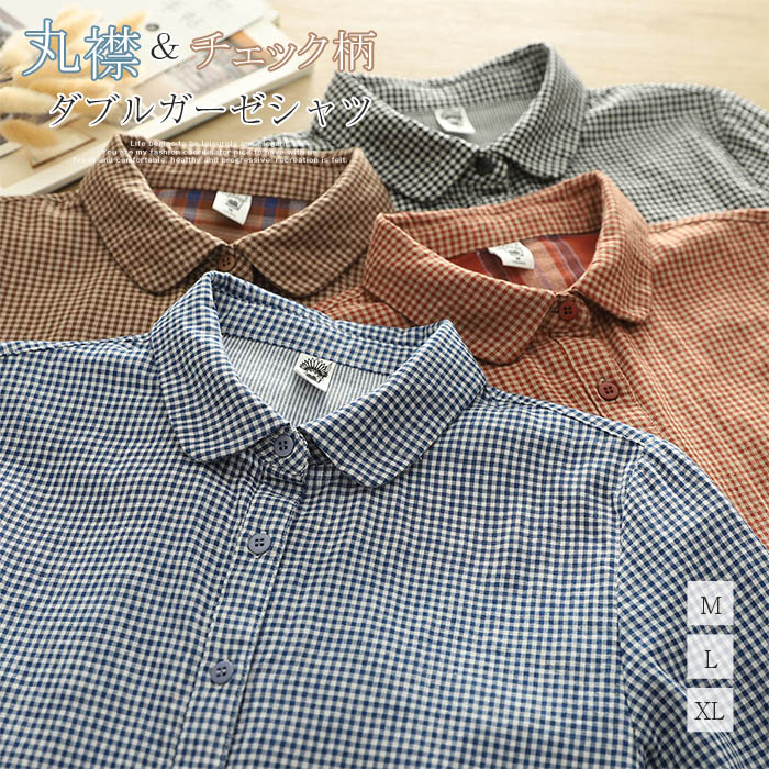 ガーゼ シャツ チェック柄 レディース トップス シャツ ブラウス 新登場! 黒 ブルー コーヒー 赤オレンジ M L XL