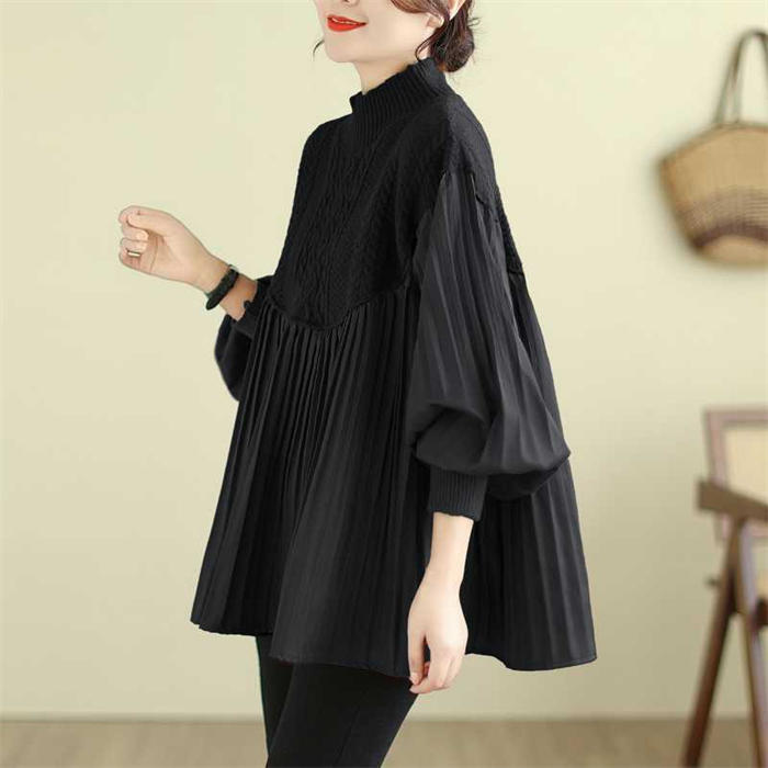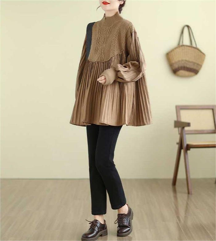 異素材 ドッキング ニット セーター レディースファッション 豊富 黒 ベージュ コーヒー色