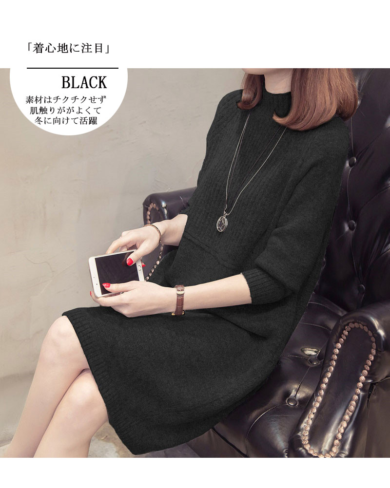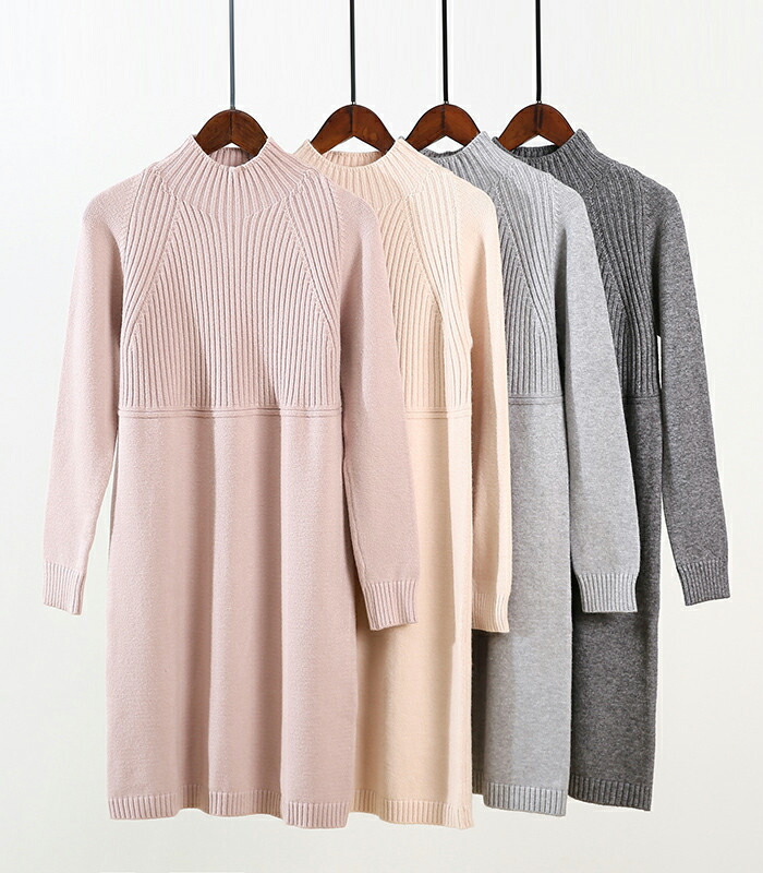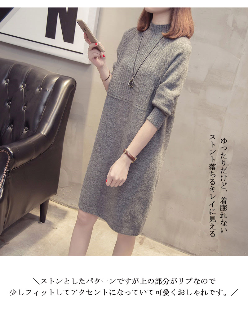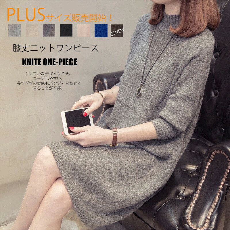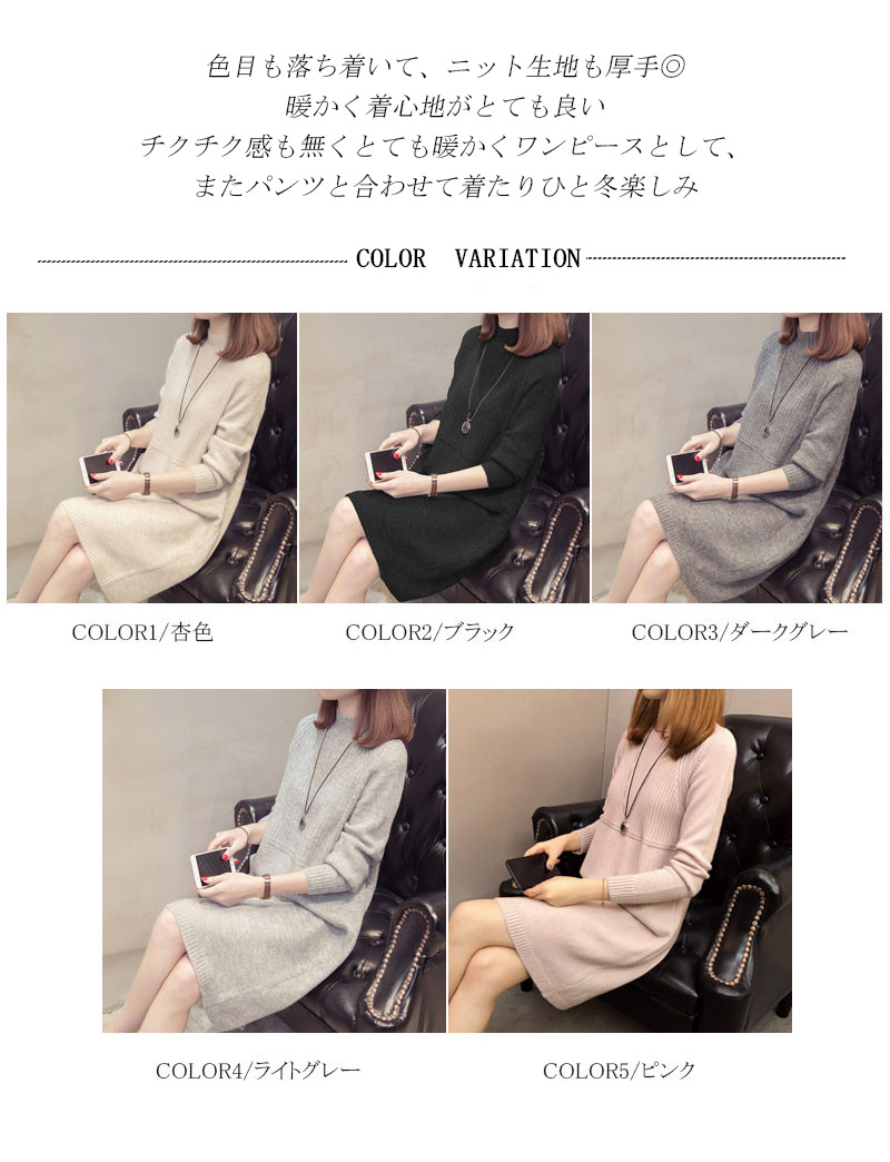 ワンピース ニット レディース チュニ ワンピース 新登場! ダークグレー ライトグレー ブラック ピンク 杏色 ネイビー コーヒー色 レギュラー プラス
