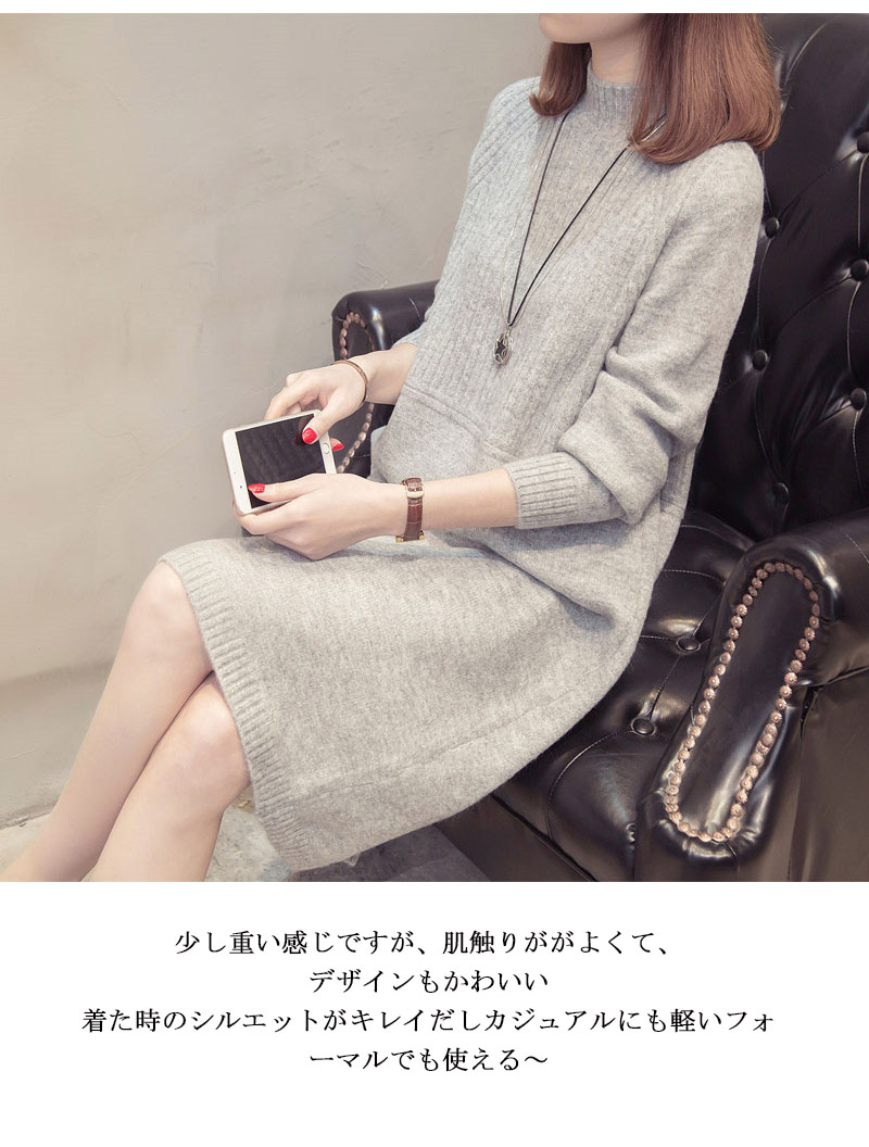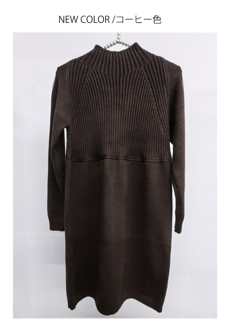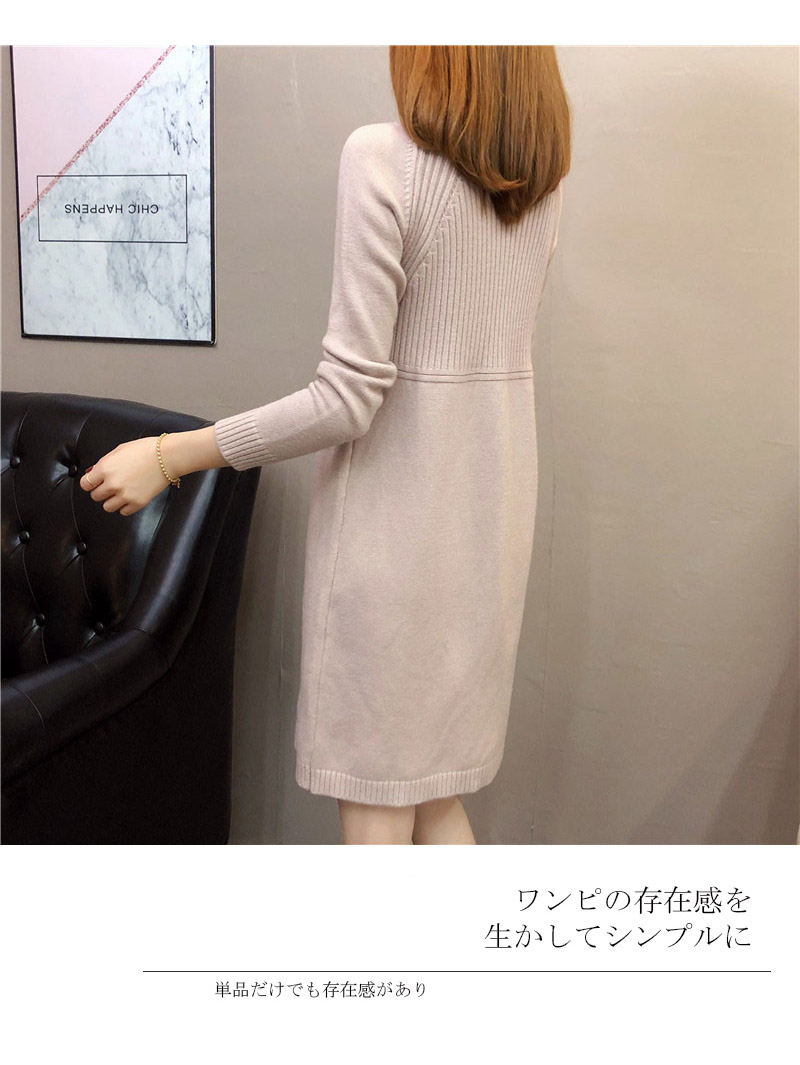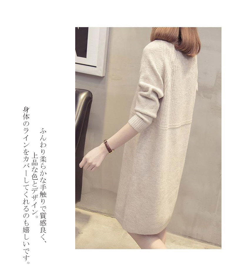 ワンピース ニット レディース チュニ ワンピース 新登場! ダークグレー ライトグレー ブラック ピンク 杏色 ネイビー コーヒー色 レギュラー プラス