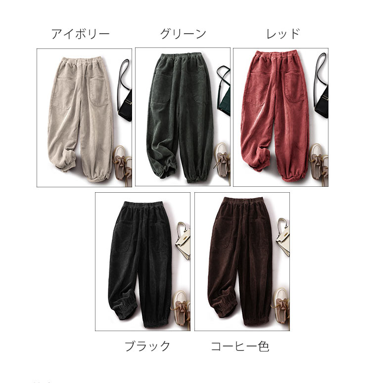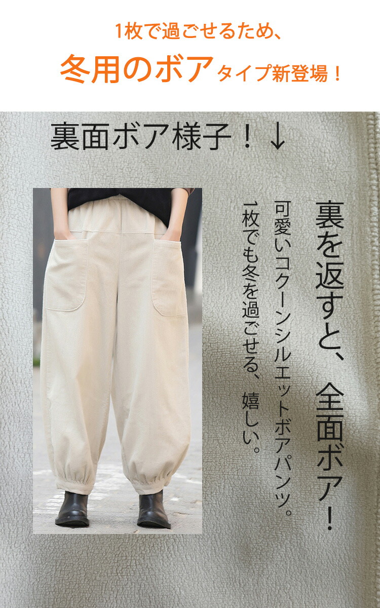 バルーンパンツ レディース 秋冬 コー ボトムス パンツ 超目玉商品 アイボリー アイボリーボア付き グリーン グリーンボアづき ブラック ブラックボア付き レッド コーヒー色 M L XL 2XL