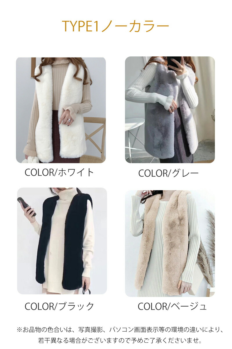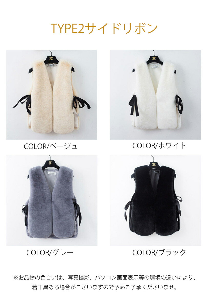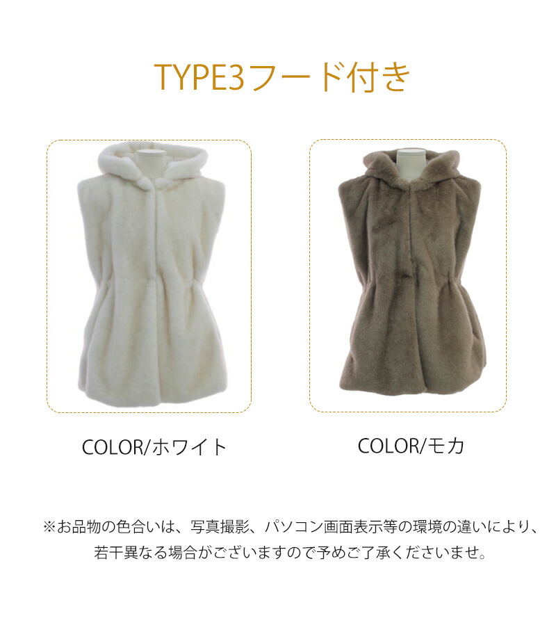 ファーベスト 秋冬 レディース ファー レディースファッション 豊富な品揃え タイプ1ノーカラー タイプ2サイドリボン タイプ3フード付き グレー ベージュ ホワイト ブラック モカ