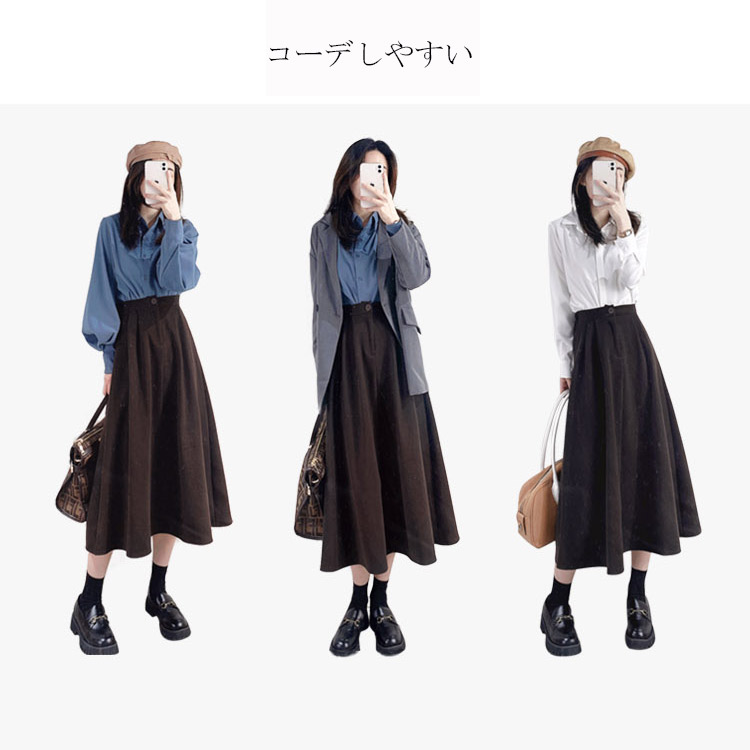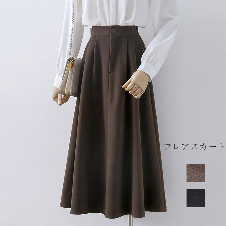 フレアロングスカート 秋冬 レディース ボトムス スカート 特集 COLOR1コーヒー色 COLOR2ブラック S M L XL